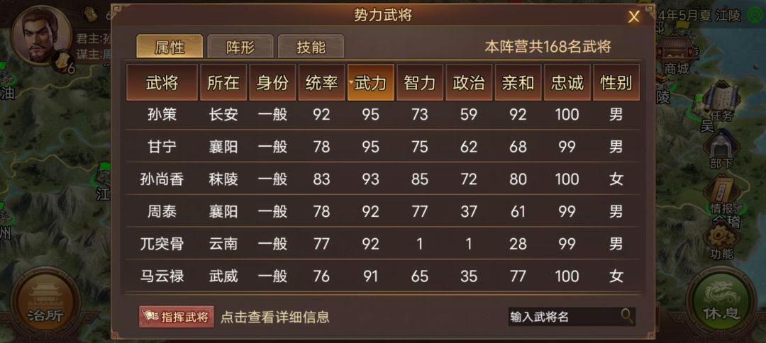 玩的孙权先打了刘表,把刘表灭掉之后,一边防守曹操一边攻打西蜀 ,拿下西蜀之后打曹操长安,拿下长安并平定后方灭了西凉,因为做了这么多事情而且是在短时间内做的损失了大量兵力所以开始休养生息,征兵,仅仅一年时间,南方人口突增,只要再休养生息几年人口就能完全碾压北方,结果这刚一年曹操就被打成这样了,以上图片有我目前的武将与军师