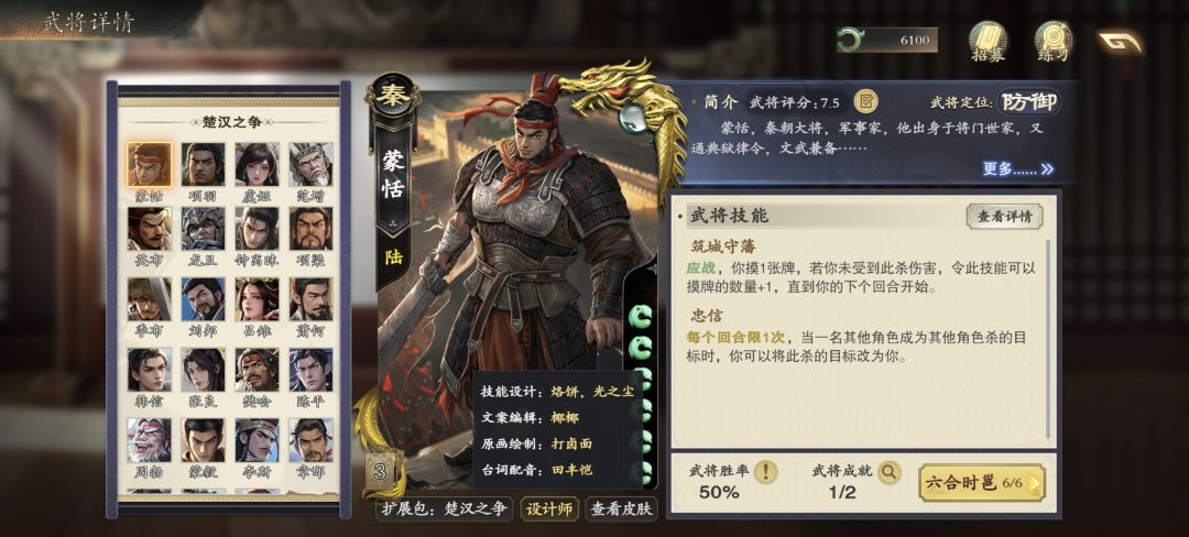二蒙是同一个模板套出来的,所以放在一起讲了,这个技能组是饼和光之尘一起设计的,作为保核将来说其实是合格的,但是两个武将用几乎完全相同的设计模板(一个摸牌,一个弃牌)是一个扣分项,属于设计师偷懒行为。技能设计是经典的盾加保核模板,虽然叠数值,但是好就好在基本没有主动能力,属于中规中矩的设计。