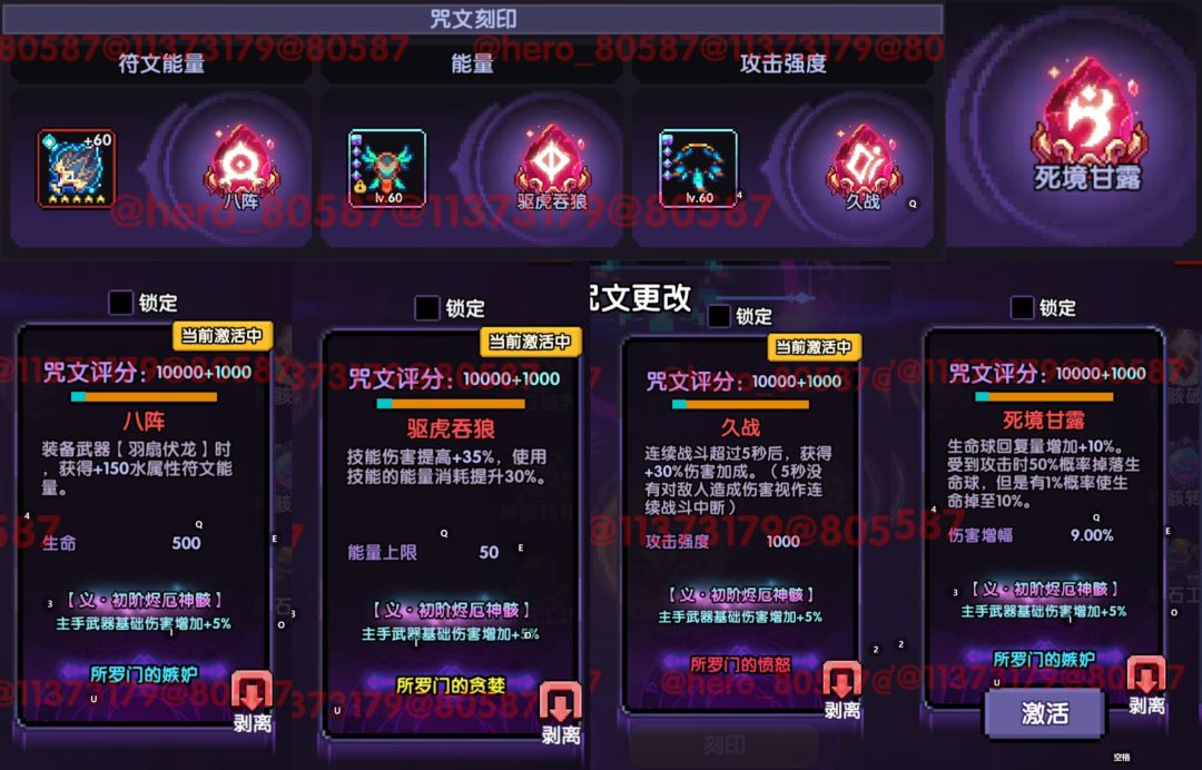 稀有属性:火系压制,伤害增幅,克制增幅/技能等级(80级技能后不要技能)