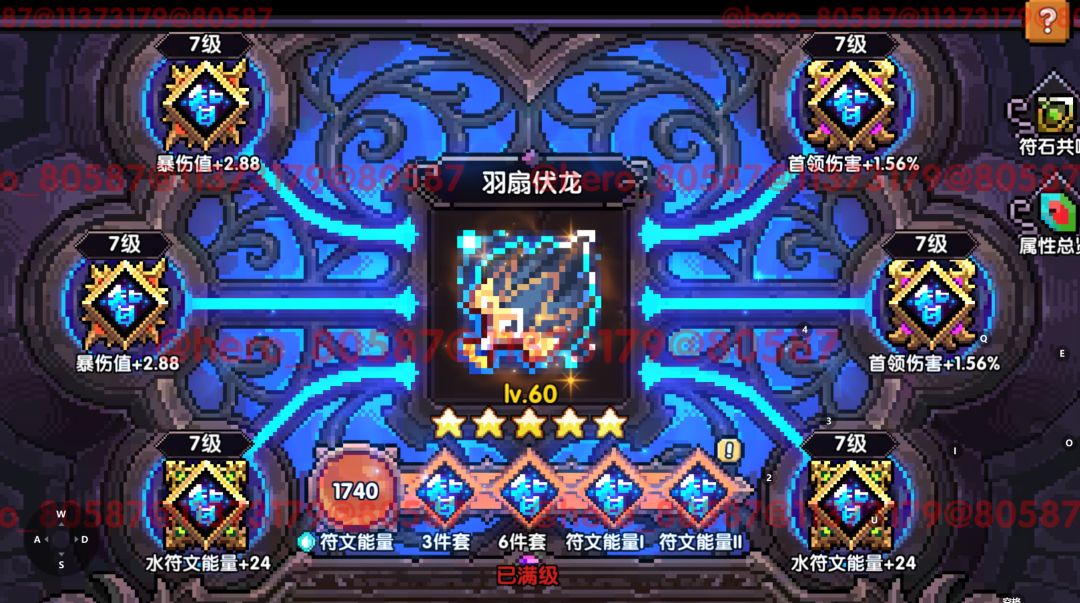 羽扇伏龙:首领,穿透,水攻/暴击值