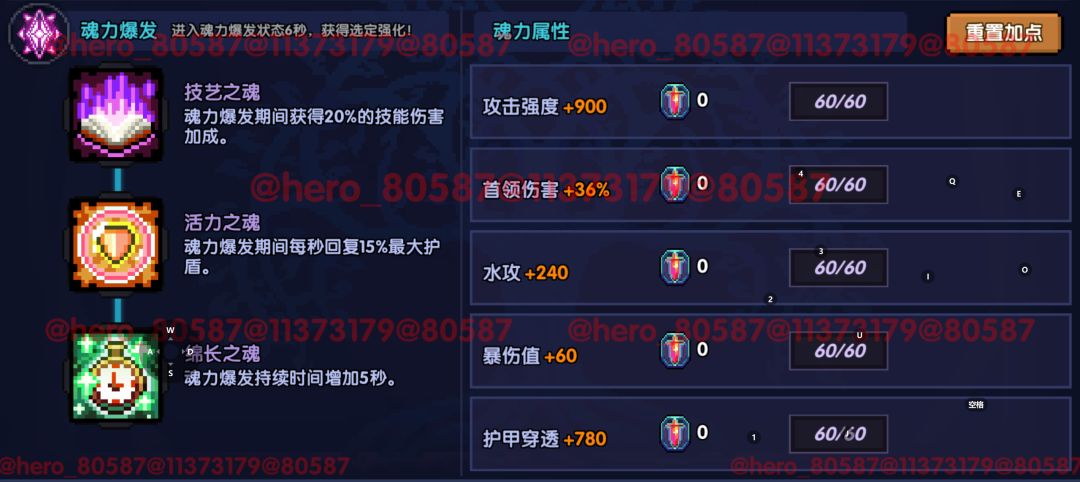 魂力分配:攻强--最后多出的点数两者攻强平均分配