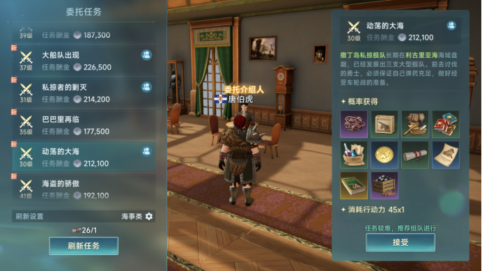 航海士招募路线:商人期期间就要开始招募海事航海士了,首先要解决续航问题,第一个就是韦拉克鲁斯的罗伯特了,然后是保证副舰强度,招募圣胡安的奎因。后面就随意一些了,如果马上要补冒险就把几个学科航海士招募到,巴萨罗那、热那亚、那不勒斯。如果PVP居多,拉斯帕尔马斯、休达、锡拉库萨。继续补PVE舰队强度就爱丁堡、汉堡、斯德哥尔摩。