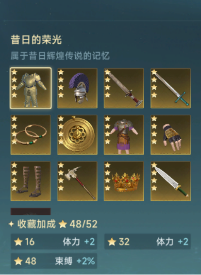 过度装备根据各服海市和自身情况,请在“英灵殿的战魂”、“昔日的荣光”、“海上霸者之证”这三个装备收藏中挑选,并尽量在升级过程中完成这些收藏的大部分内容。
