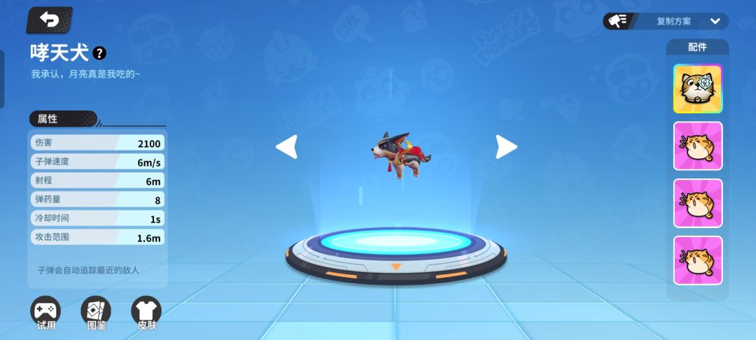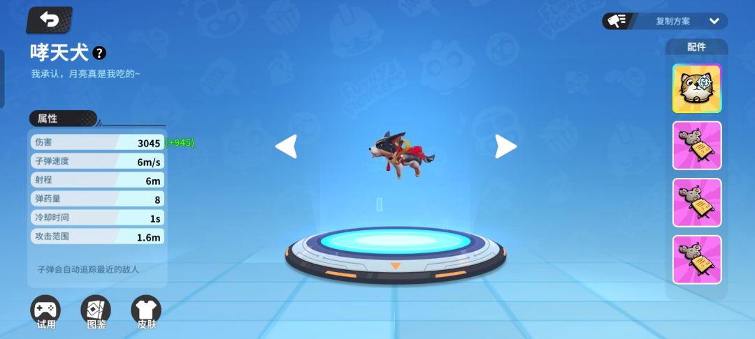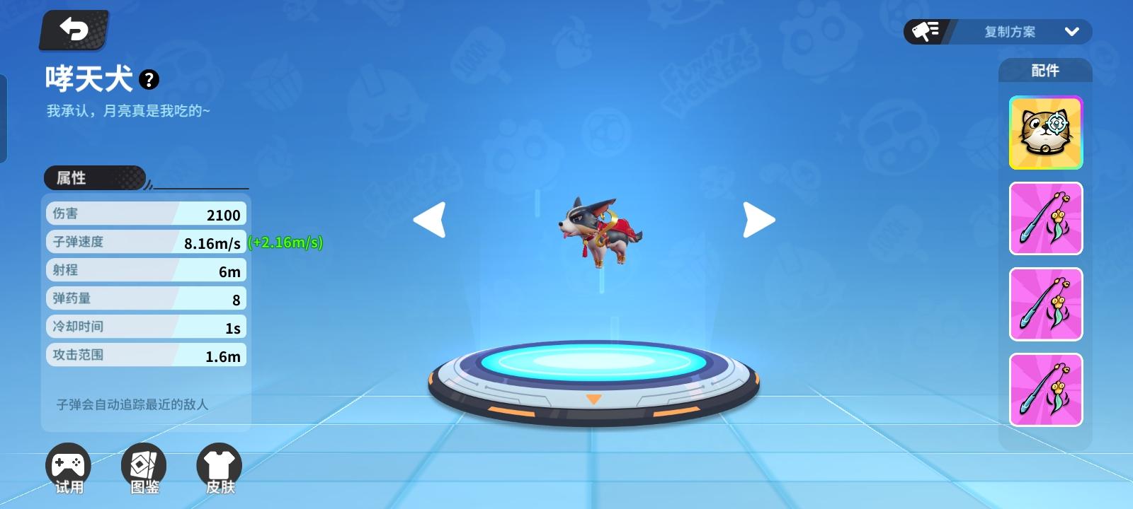 评价:此搭配的想法是万能的搭配嘛,既然子弹能自动追踪敌人,那我们就提升子弹伤害,命中敌人就是大残