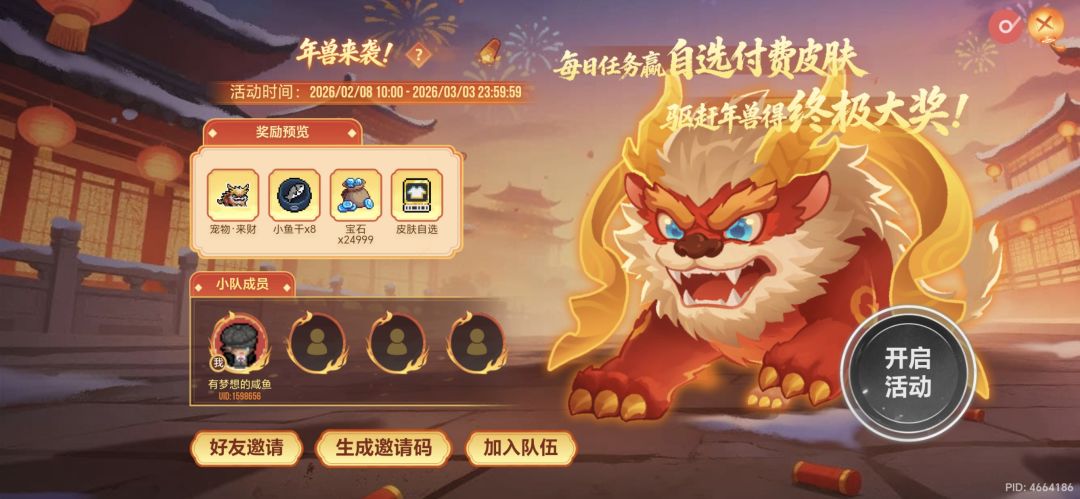 红红火火过大年,热热闹闹迎新春!队伍ID: NBV2AJ2e0vN6ni,就等你了!