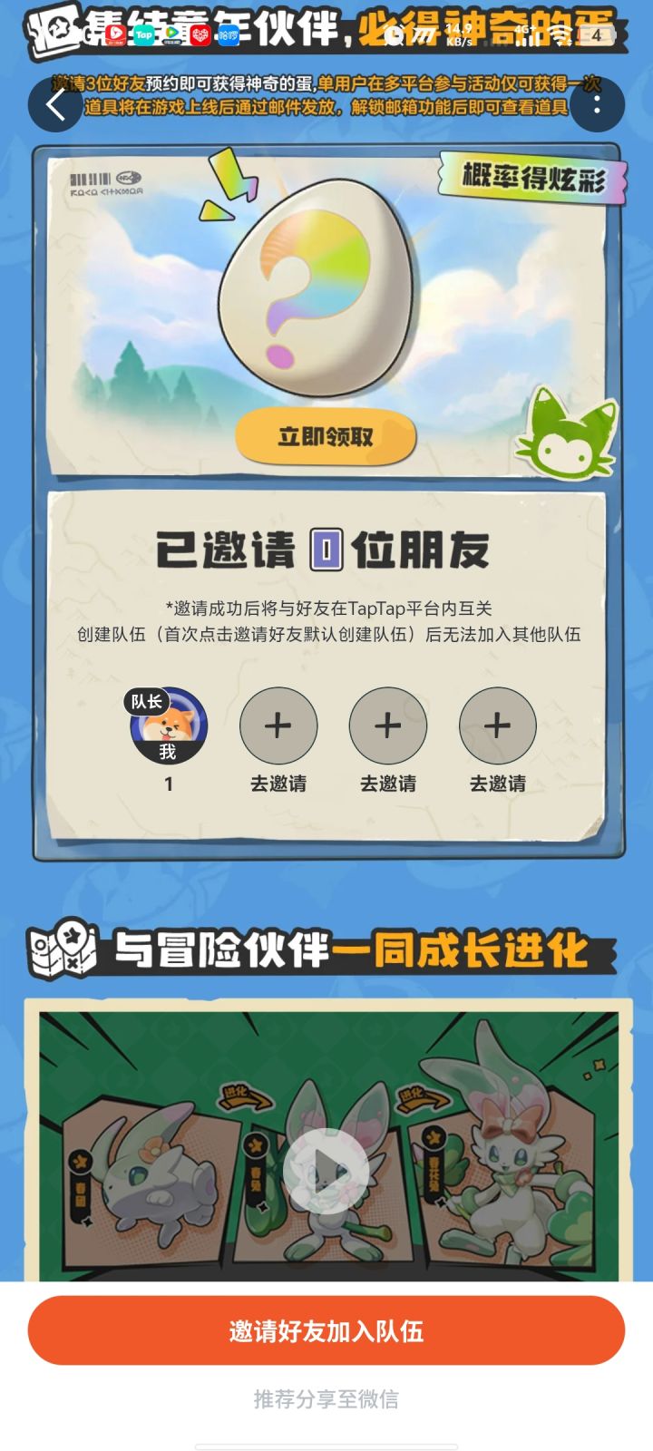 有人组队吗,快来 TapTap 加入「《洛克王国:世界》3月26日上线,组队必得精灵蛋,概率获得炫彩精灵」 🕹 IdkYWyl8 🎮
