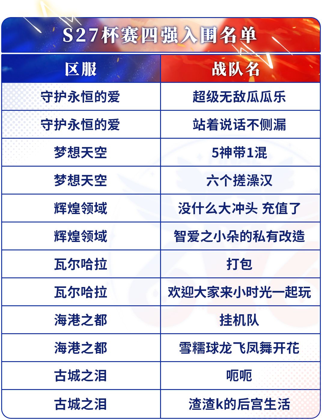 恭喜以下战队