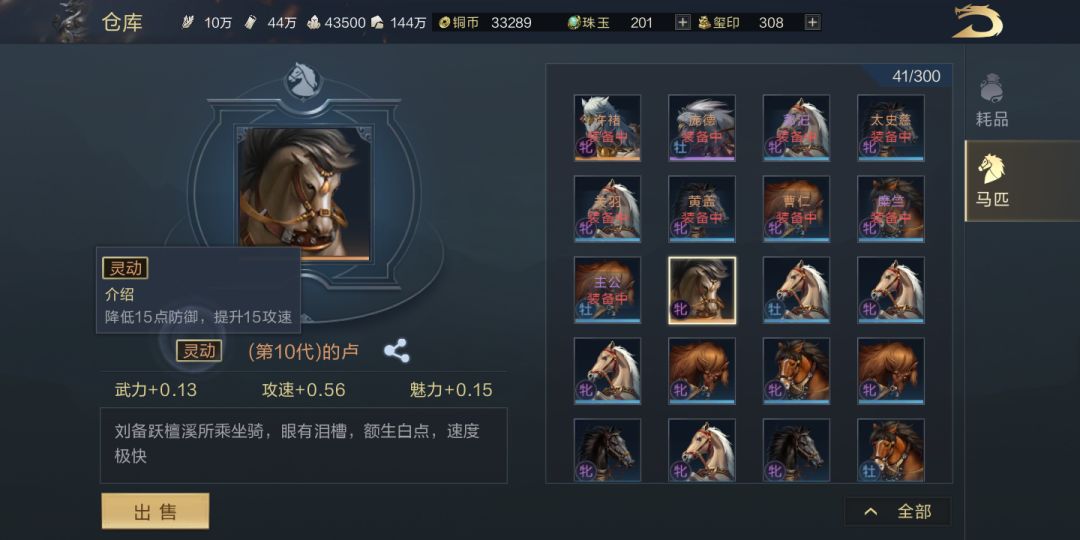 同时,一代白马育马时,选择武防智速属性的白马,可防止后代马出现魅力/政治两个无用属性。
