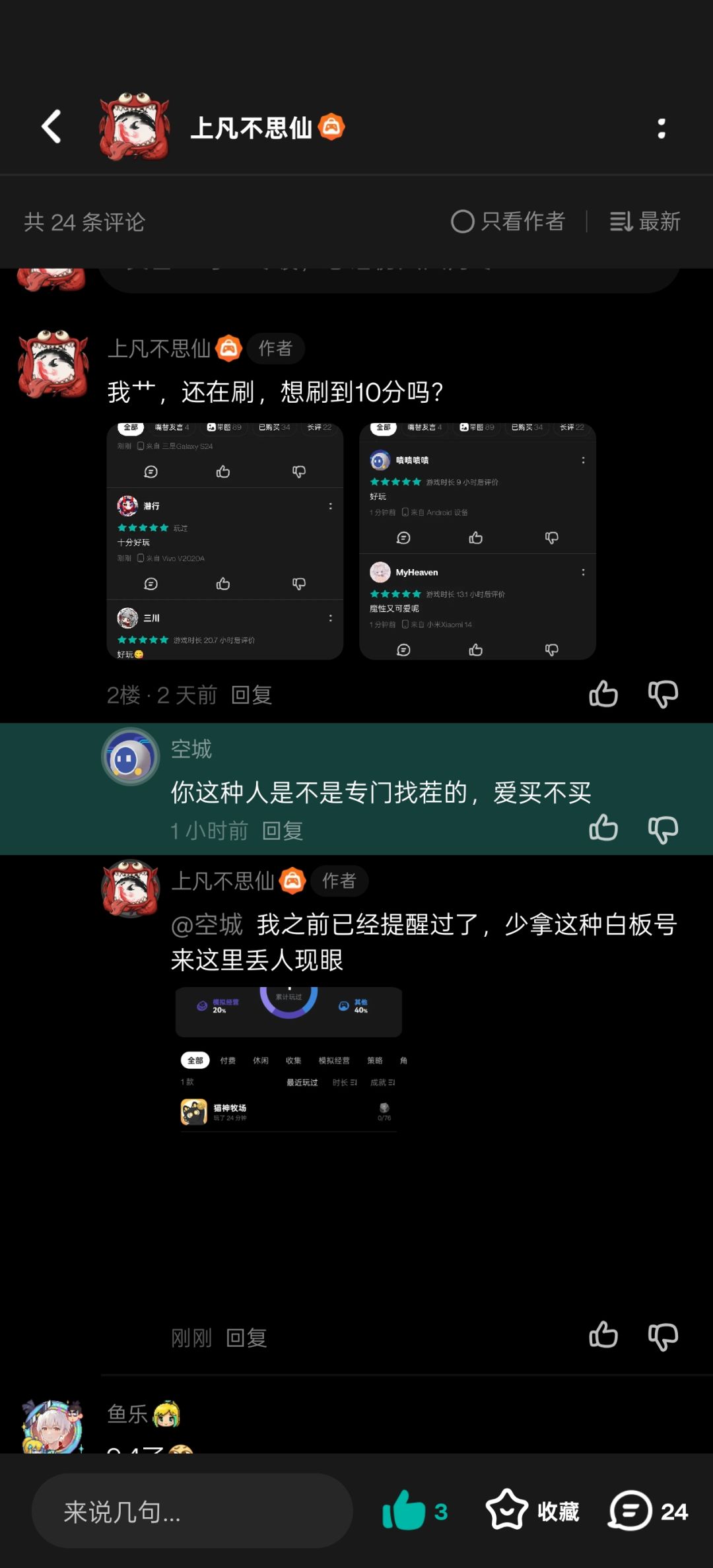 另外这游戏官方还找了一堆白板号来回复我,明知故犯。