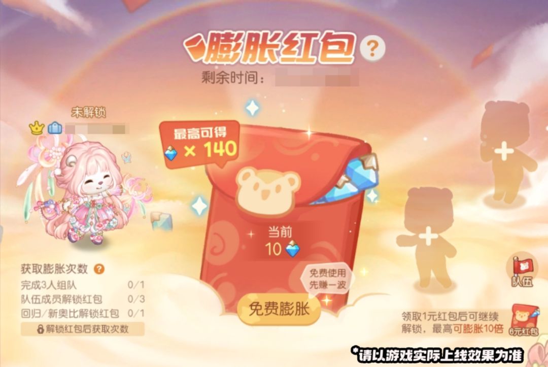 3)队内如有回归/新奥比解锁了红包将额外+1次膨胀次数;