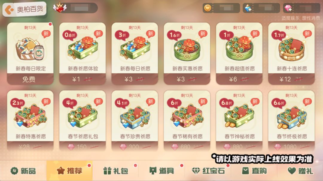 活动介绍:「奥柏百货」上架全新限时礼包——「新春」系列、「萌宠」系列折扣礼包,限时折扣优惠商品不可错过!