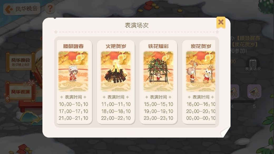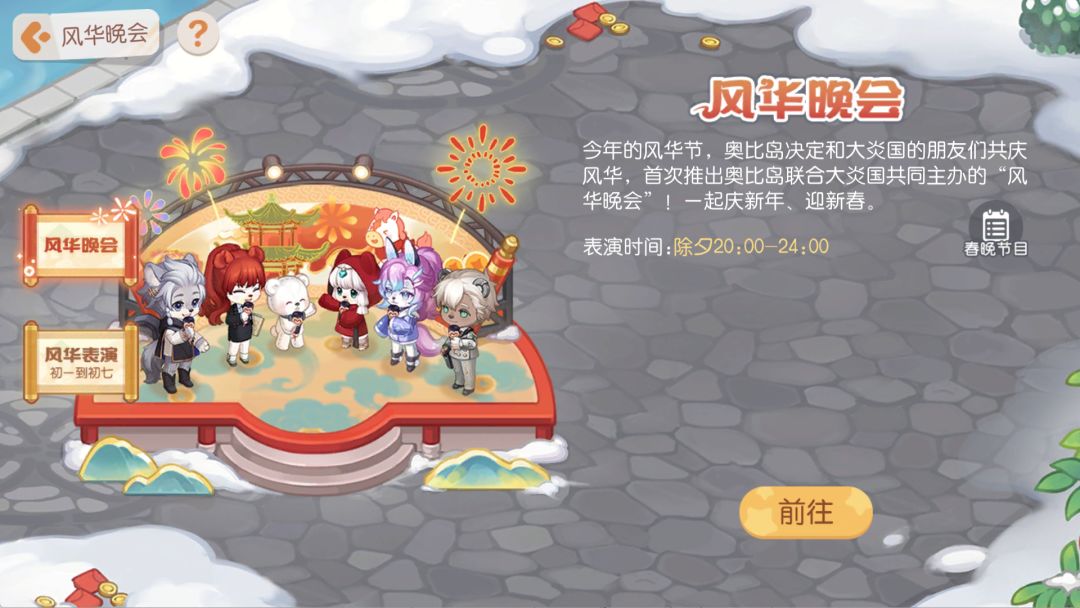 2.风华晚会为除夕夜20点至年初一0点,具体表演内容与表演时间详情请游戏内查看节目单