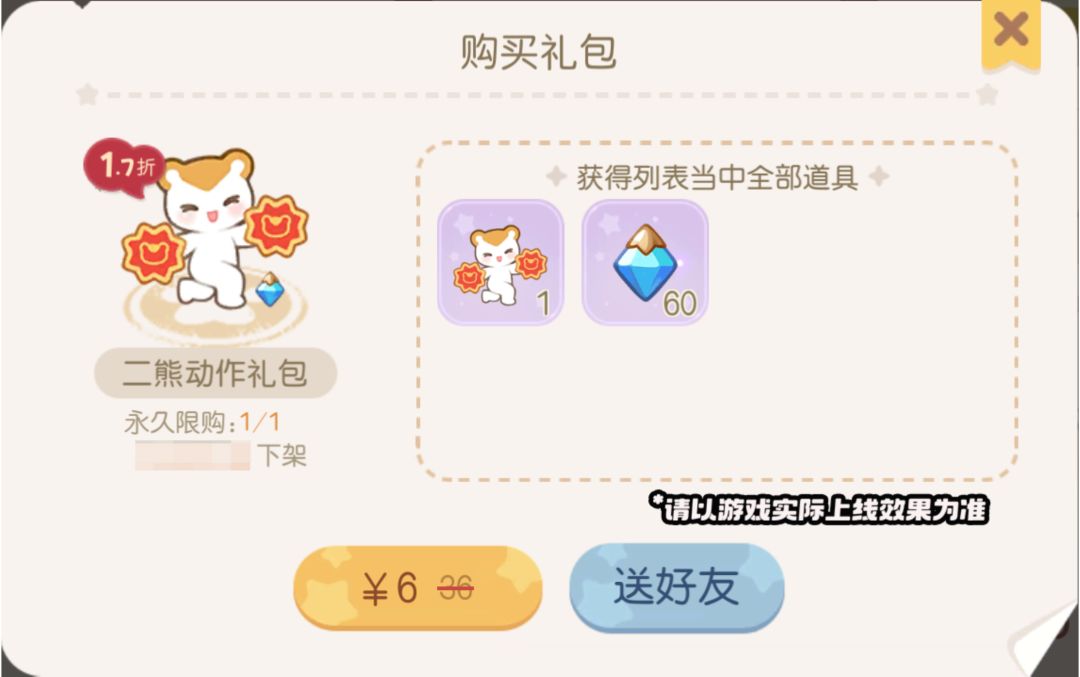 活动介绍:「二熊动作礼包」限时上架,购买可获得「动作(熊熊二熊转)」和「晶钻」奖励,喜欢的小奥比们快快行动吧!