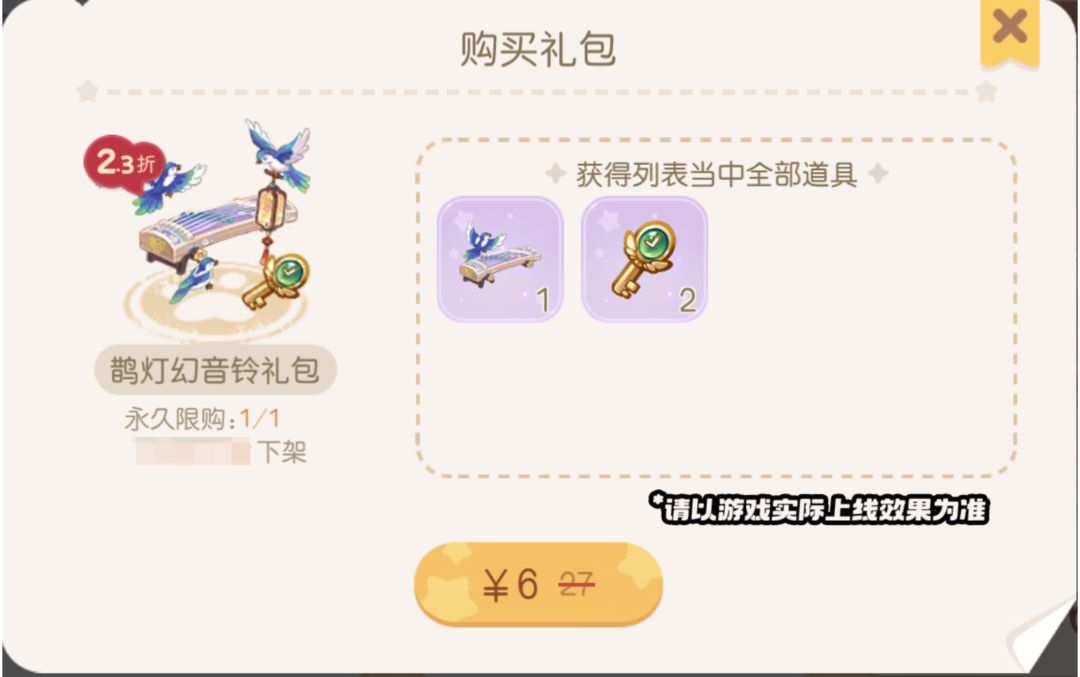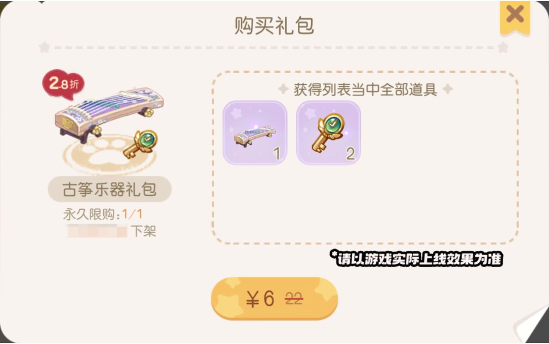 温馨提示:该礼包需要拥有「古筝乐器」后才可购买哦!