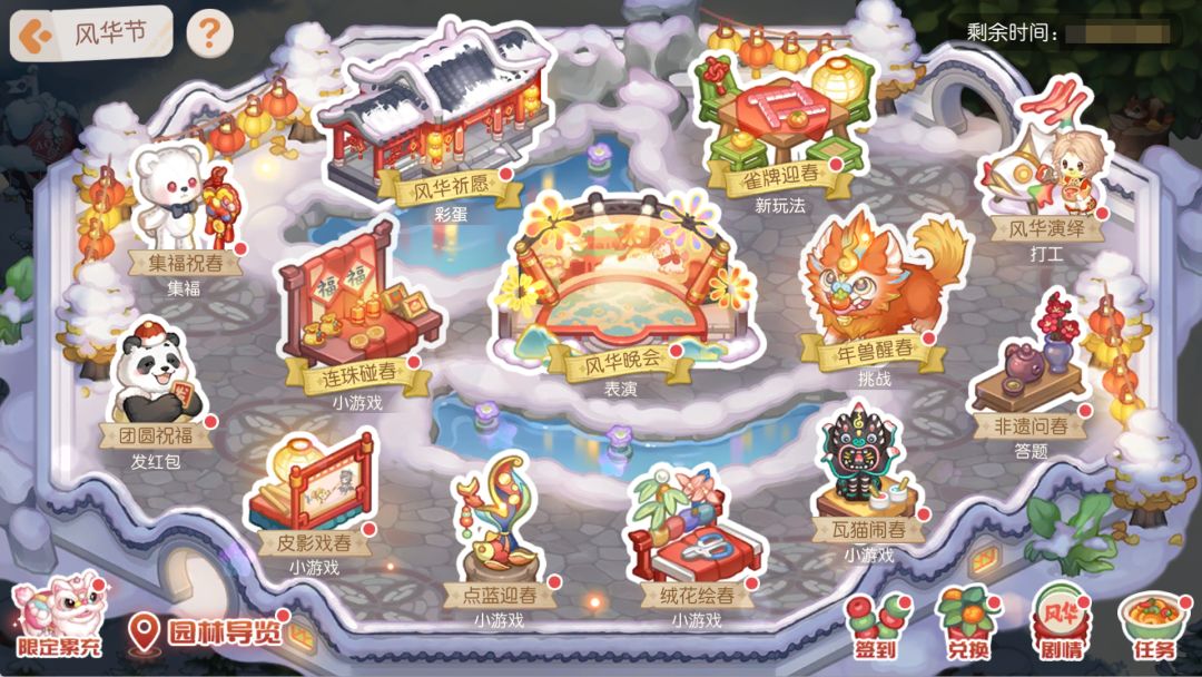 活动介绍:逛集市,乐游园;观园林,赏美景;看节目,喜开颜;贺风华,庆新春!活动期间,奥比们可根据导览指引,完成导览手册区域内全部任务即可获得活动奖励,共计4个板块,小奥比们一起来打卡吧~