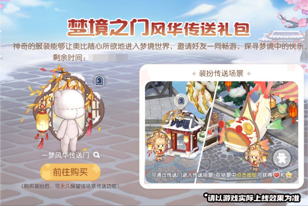 活动介绍:「风华传送礼包」限时上架,购买可获得「一梦风华传送门」传送装扮和「时空之钥」奖励,喜欢的小奥比们快快行动吧!