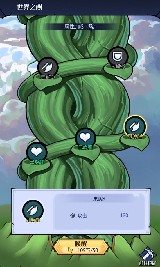 › 成长养成:使用【神秘水滴】滋养世界之树,使其结出各类属性加成果实,助力队伍成长。