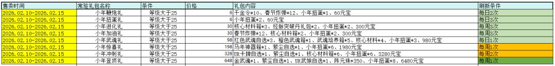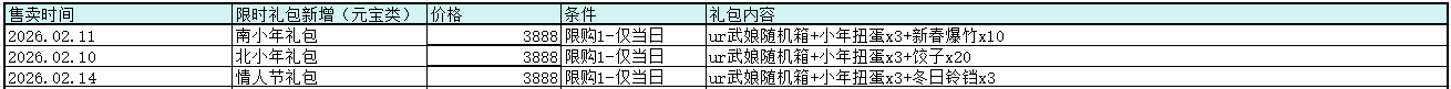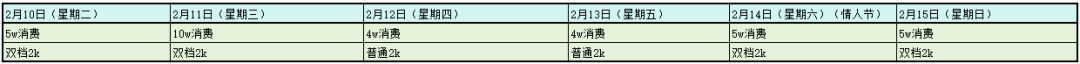 新增多天数的充值双档和消费累计的挡位,不同的挡位将会获得累计更多的奖励内容,同时2月10日,11日,14日消费4万以上包含小年扭蛋.