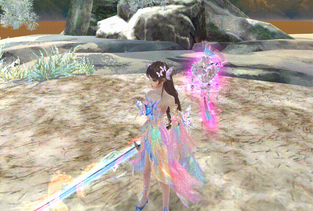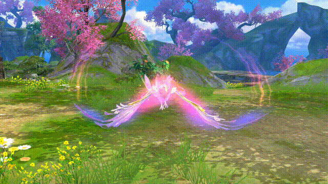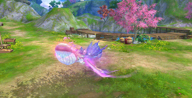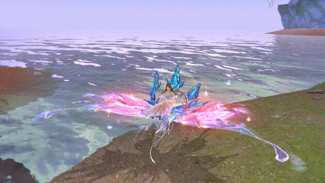 绯粉与莹白渐变的蝶翼铺满躯干,飞行时翼面流光闪烁,掠过天际时,仿佛为江湖晚霞添上了一抹浪漫绯色,自带超强排面。