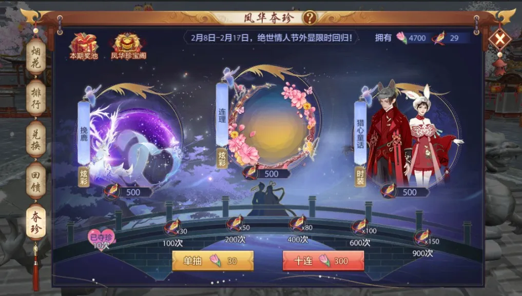除此之外,经典版的少侠们,还将同步迎来凤华夺珍活动,大家翘首以盼的绝世情人节外观,限时返场啦!