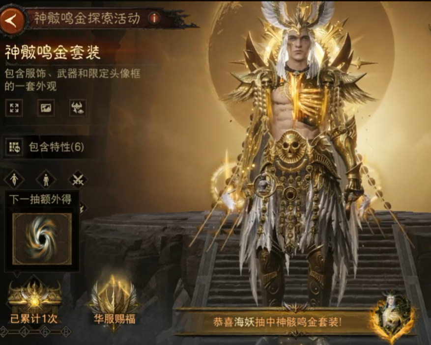 走动有 “鸣金武神” 幻影跟随,金色基调与翅膀完美呼应,技能特效都裹着神圣金光,气场无敌。