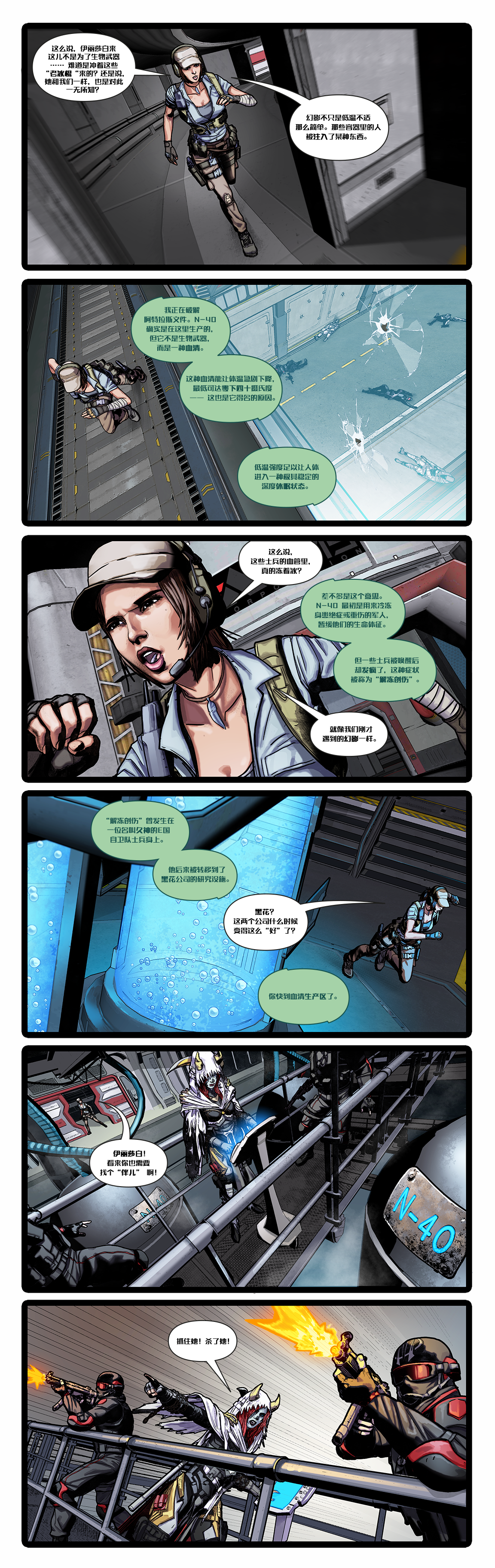 白天,E研究基地N-40生产区中,艾本孤身一人与黑花特工们展开了激烈的战斗......
