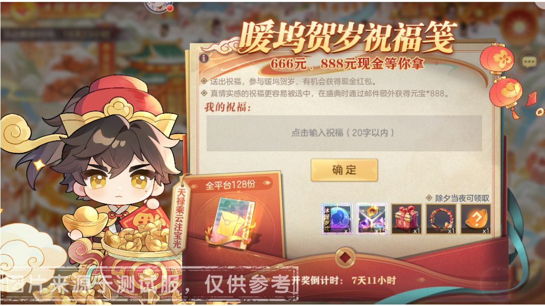 与此同时,若小将军的祝福语被选中在游戏内展示,小将军亦可获得元宝*888奖励。