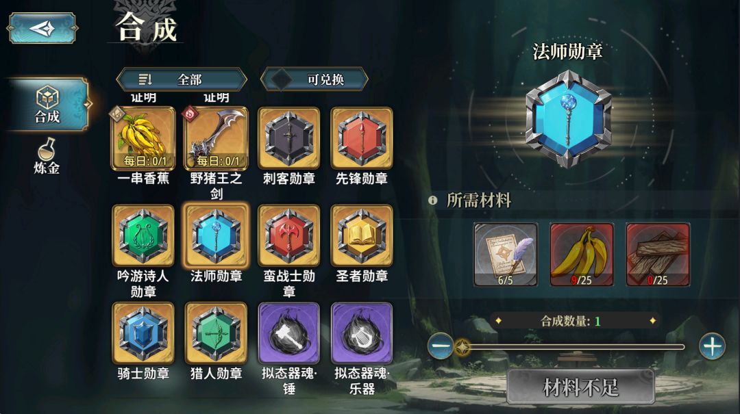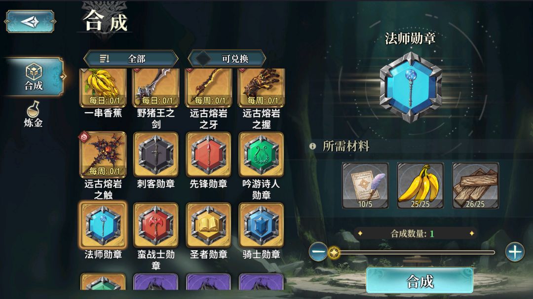经过上述两步,我们就可以通过用[体力]刷[元素试炼]获得材料,再用得到的材料在[合成]系统中合成获得[体力药]、[精力药],基本就是无限[体力]、[精力]