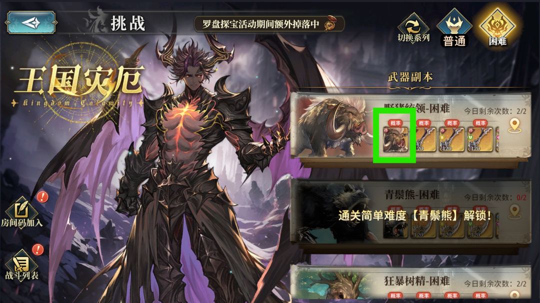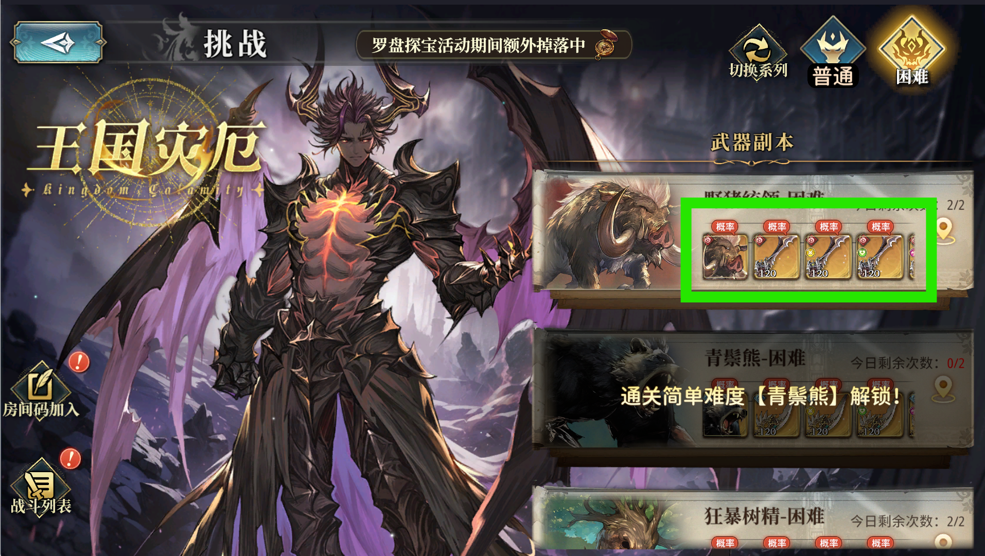 后两种材料分别需要我们刷取[猩猩王]和[狂暴树精],第一种材料在刷取这两个Boss的过程中会同时掉落(刷普通或困难都行)