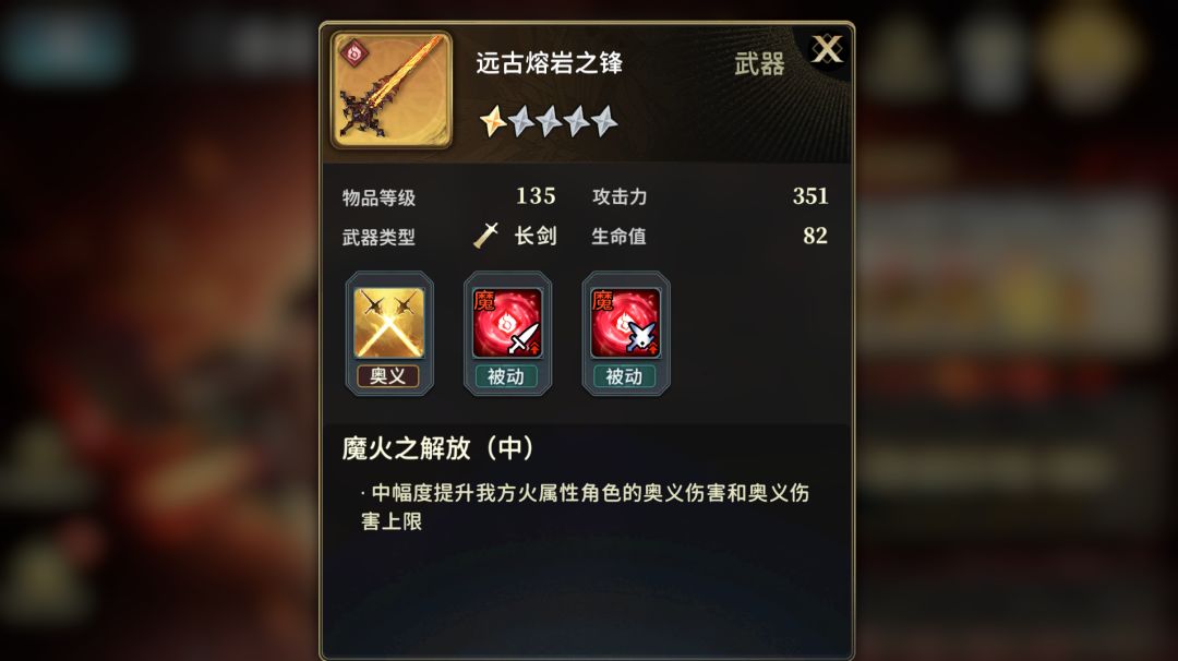 第三个是武器[古熔岩之握],它的特点是其的[武器的被动]:大幅度提升我方火属性角色的攻击力,这把武器可以提高我们队伍的输出能力,其它事项同上