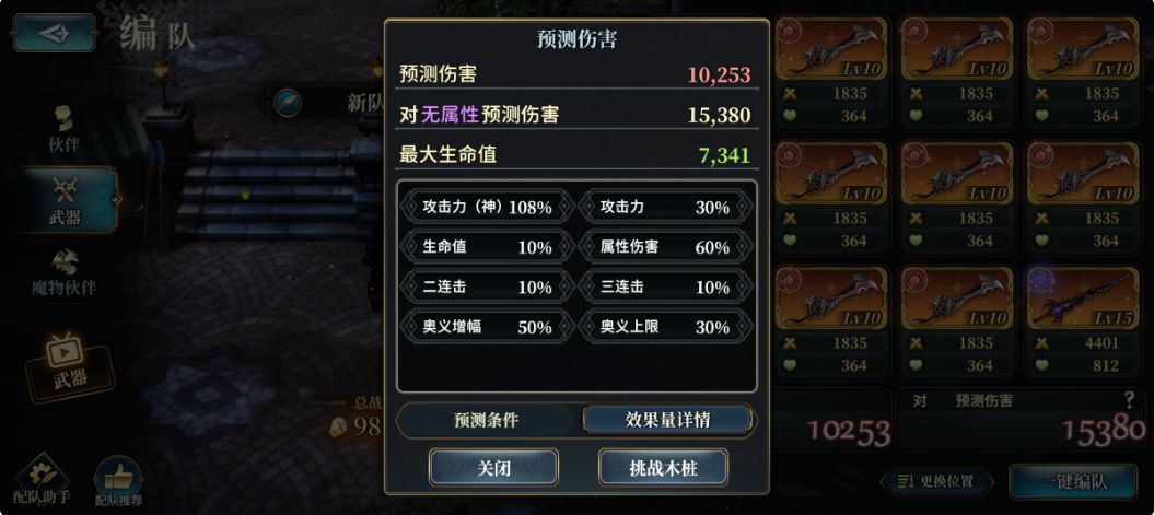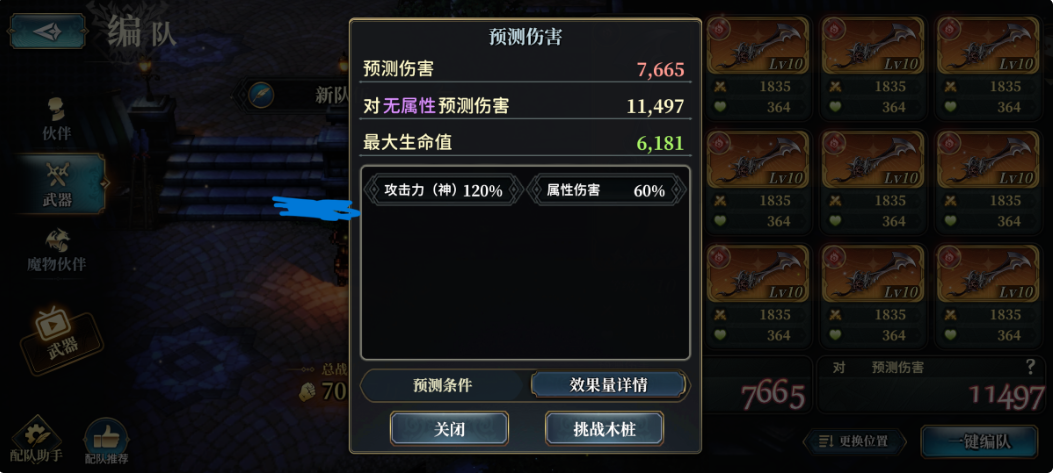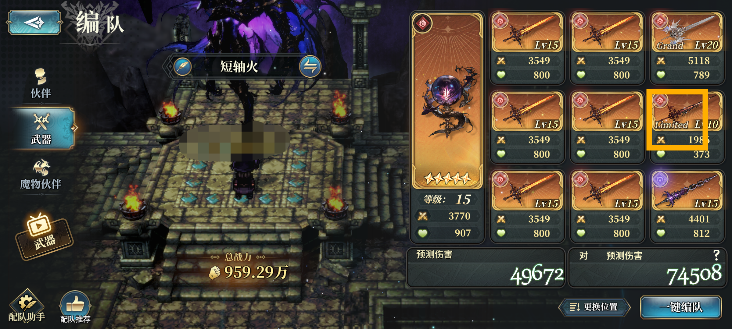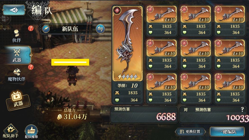 一是[短线爆发]队伍,这是指尽量在最短的回合数内打出最高的伤害,配队、[武器盘]、[魔物伙伴盘]全为打出更高的伤害服务,而生存因素则被完全抛弃,因为我们一般一两个回合就结束战斗了,不需要生存。但这种配队的长线输出能力很弱,生存能力也很差,在Boss血量很厚的高难本中实际输出能力较低,几回合就会被团灭,所以[短线爆发]队伍主要用在需要反复刷取的中低难度副本中