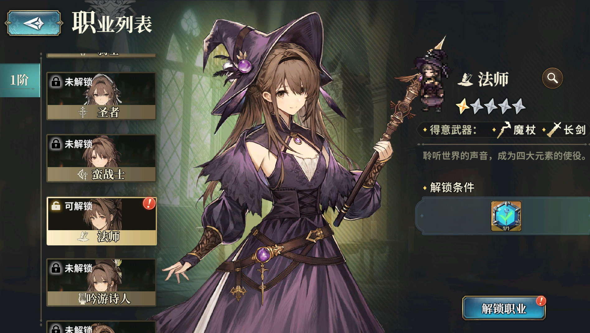 按照上篇的内容,[法师]的[转职]需要如下图所示的材料