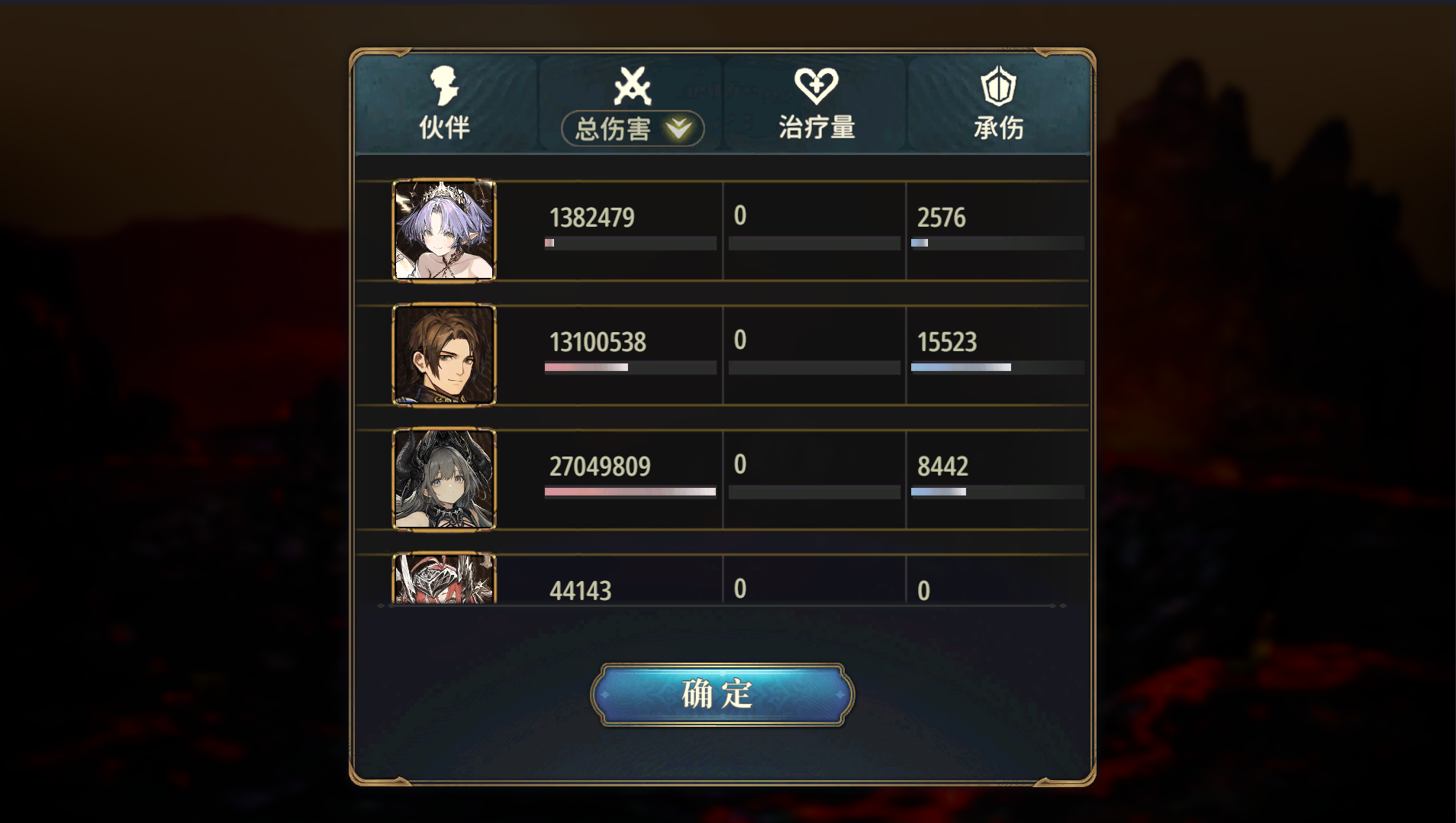 2:这是一个表,会显示房间中[贡献度]最高的几位玩家的[贡献度]和你自己的[贡献度],你可以由此了解到你们各自造成的伤害,点击这个表可以看到房间内所有人的[贡献度]数据
