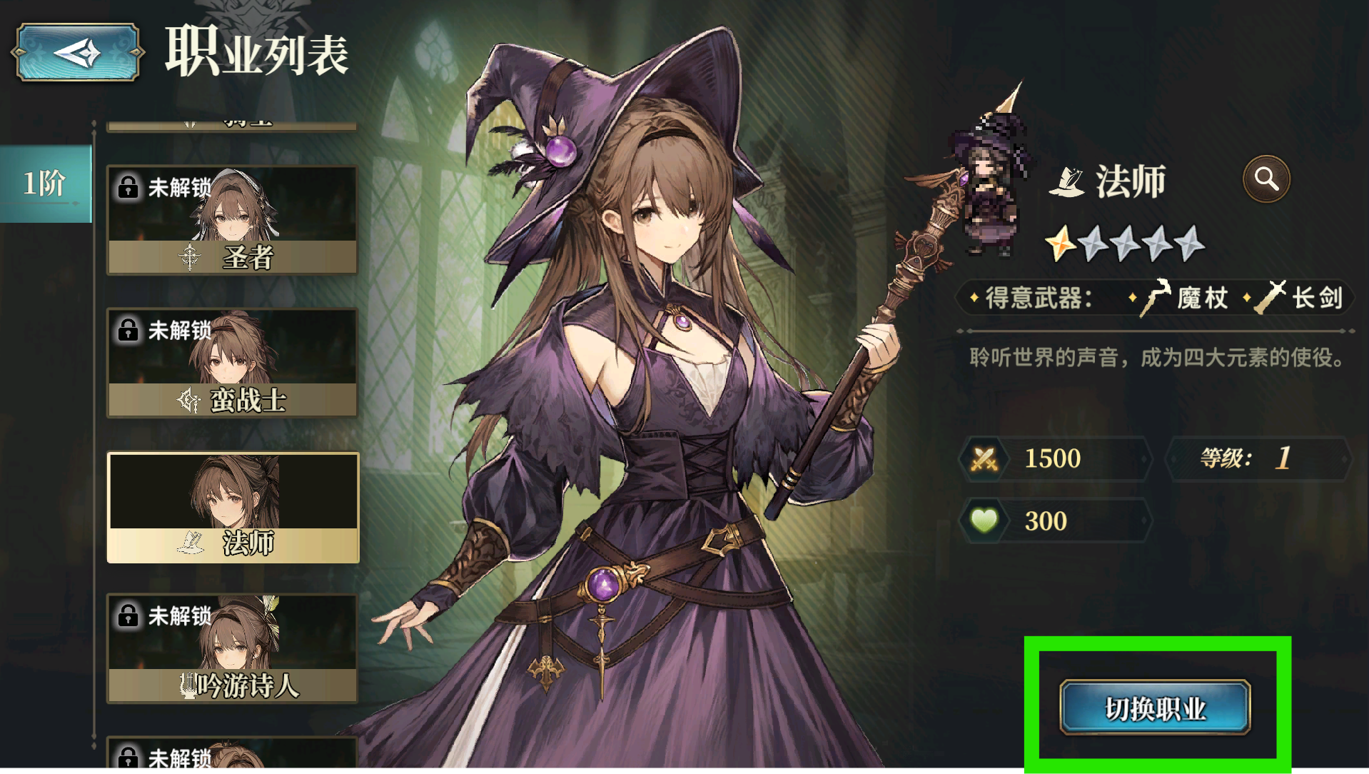 在成功解锁[法师][职业]后,我们还要再次回到[转职]页面点击[切换职业]才能成功[转职]为[法师]