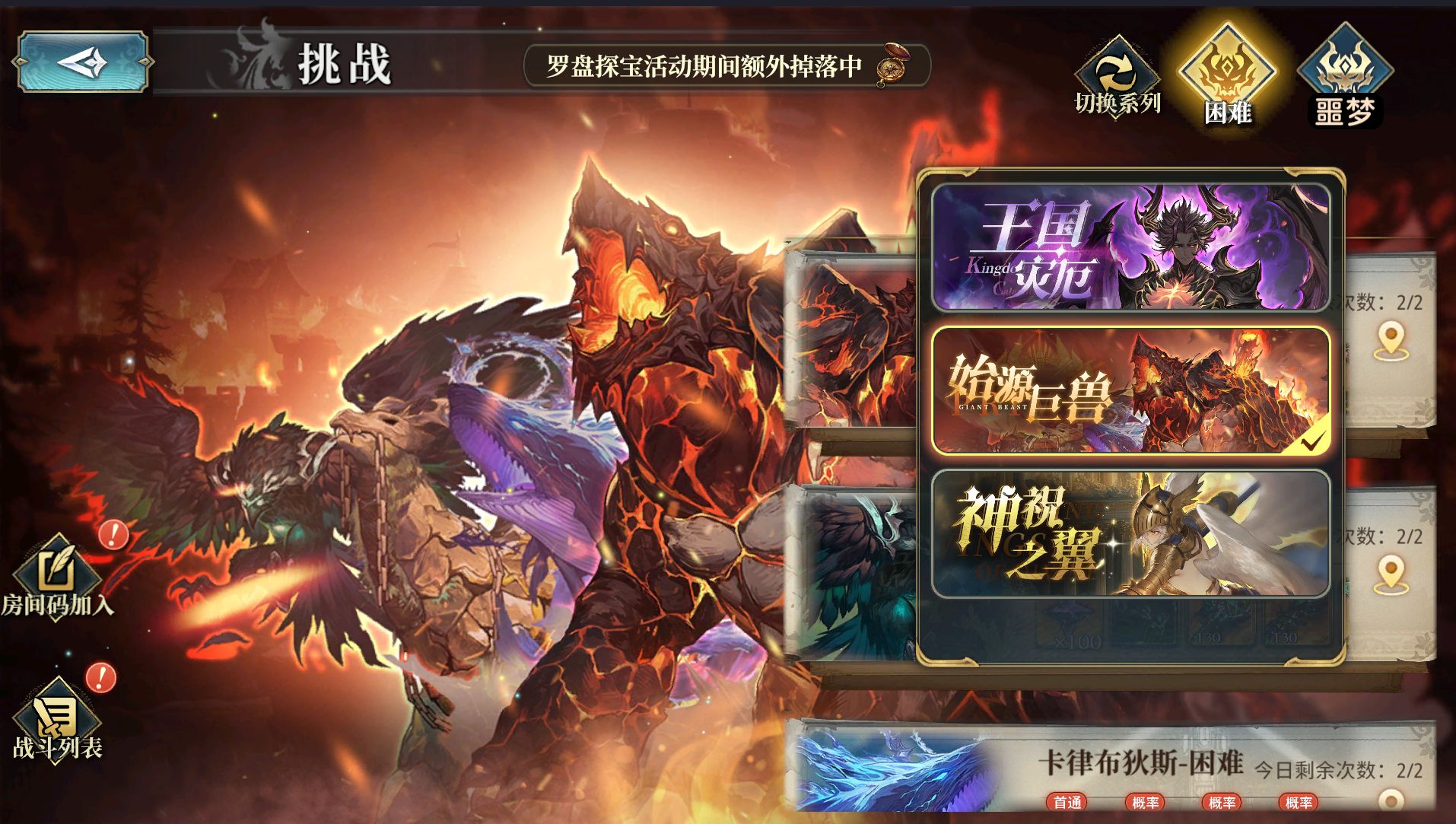 在[始源巨兽]系列副本中,刷取流程还是和[王国灾厄]系列副本一样,加入房间等别人击败Boss领取奖励,但在开始刷取装备前我们还需要了解几个非常重要的游戏概念