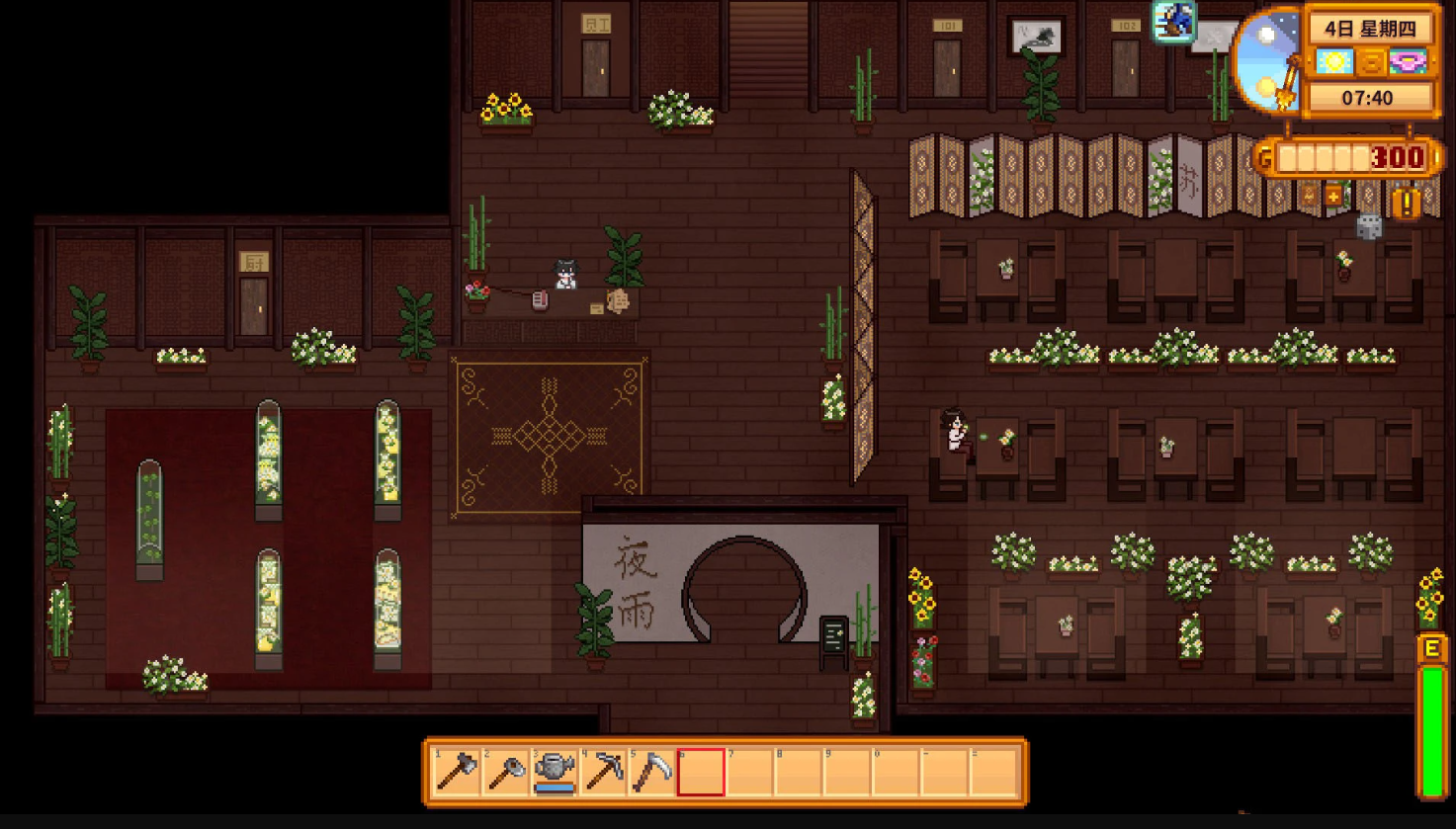 国风地图包含小铭的院子、居所、苏镇及夜雨客栈等场景,支持随机觅食、温泉恢复体力,且晕倒不会扣除金币。此外模组加入40余种新物品、5 种新 buff、全新作物与8种特色锦鲤(含2种稀有鱼),还有34款国风家具及配套装饰,为玩家打造沉浸式古风农场体验。