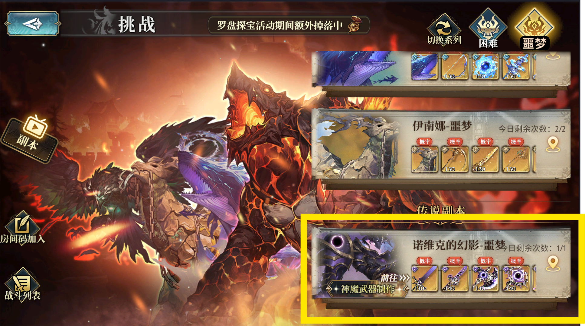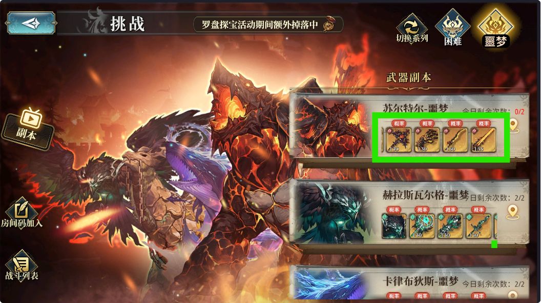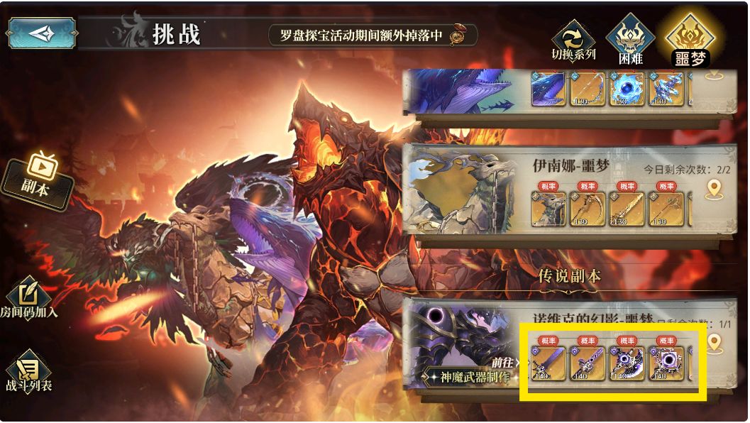 注意:副本内的[武器等级]为135的武器的爆率非常非常低,尤其是各位在战斗中无法达到[目标贡献]的时候——[贡献奖励]中掉落135武器的概率会高不少,[MVP奖励]中135武器的爆率还会加,[房主奖励]的爆率则是最高的,不过每人每天最多只能创建2次房间