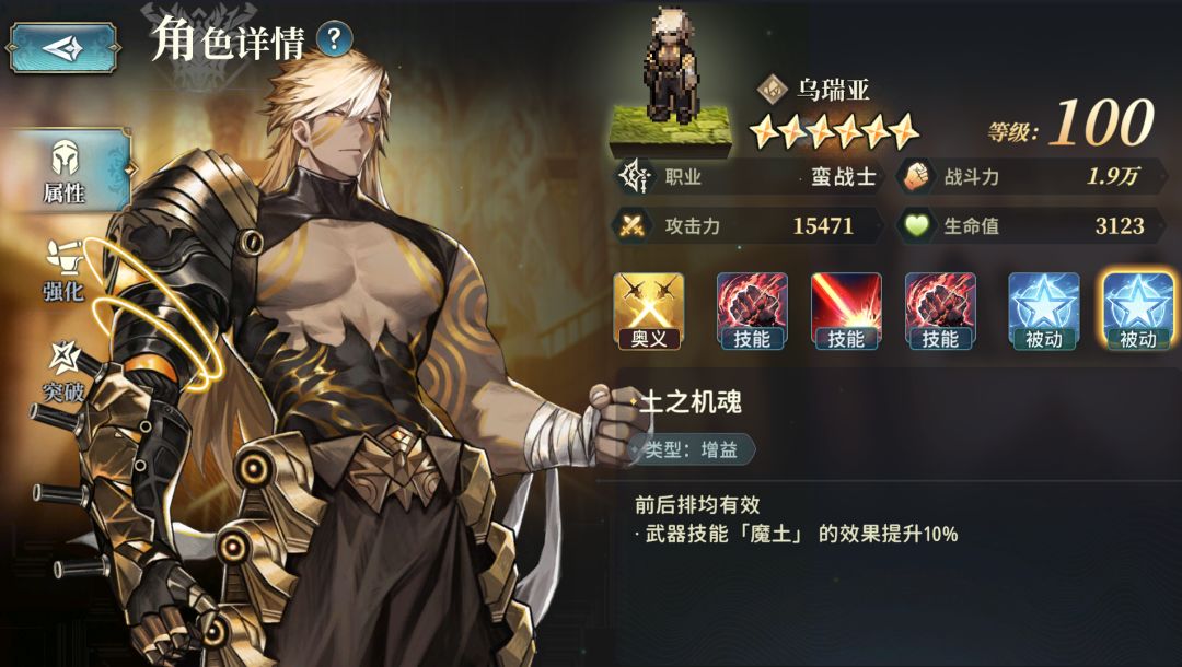 这个活动还可以获取特殊的角色[机神],一次活动只能获得1个[机神],特点是可以升到100级6星,整体强度还行(但也不是特别强,除了这个[土机神]强一点)——还有就是每个[属性]的[机神]的第二个被动,无论把[机神]放在前排还是后排,都可以提升武器盘中的[魔X]效果,可以加一点伤害