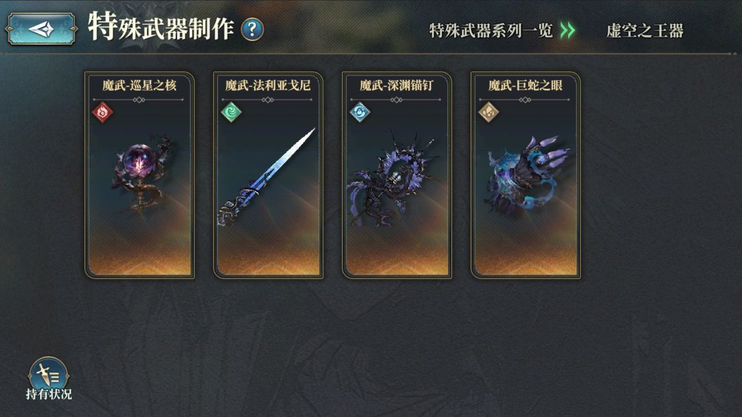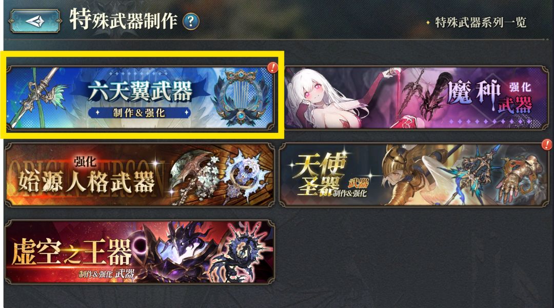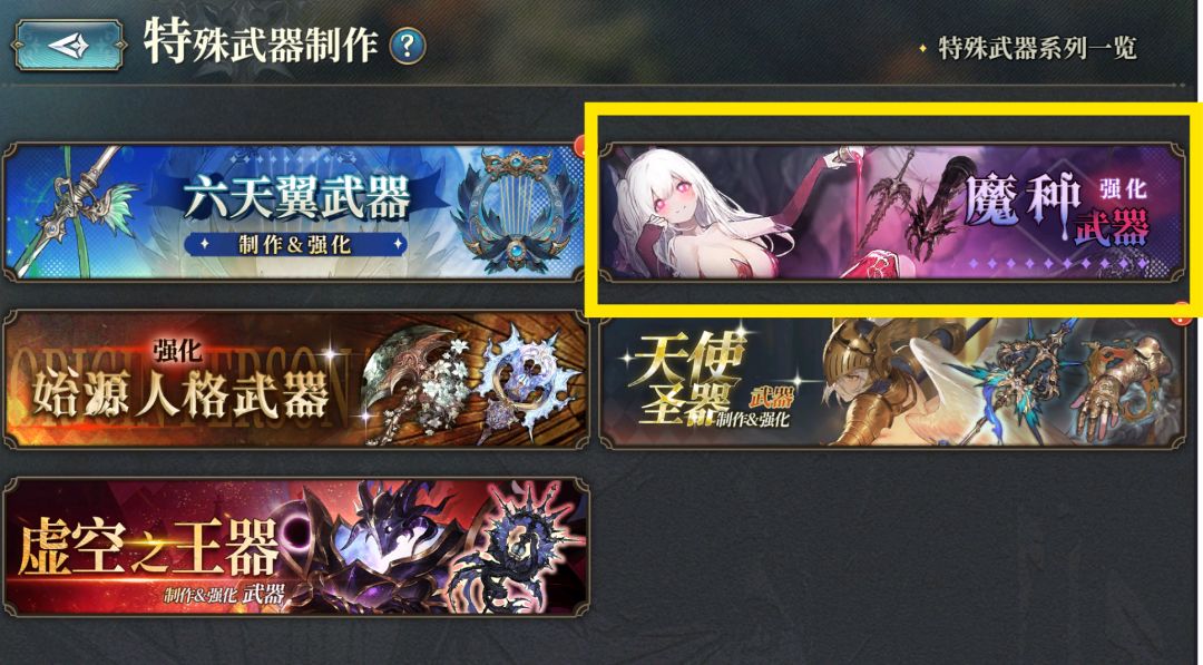 接下来是[魔种强化武器]系列,每个[属性]都有一把对应的武器,部分玩家称其为:[六道武器]