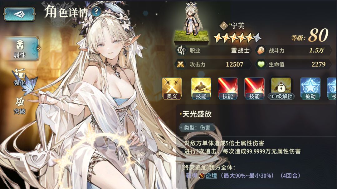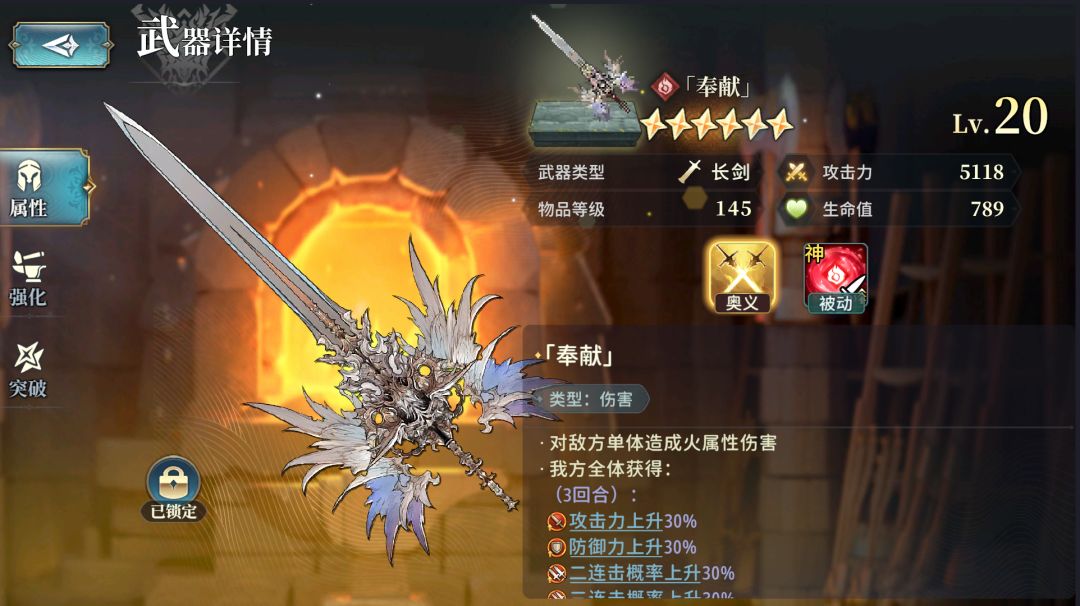 此时再消耗25把[天人武基础版],就可以让[天人]突破到100级6星,解锁[奥义]额外效果和第四个技能——一个[天人]一共要43把[天人武基础版]