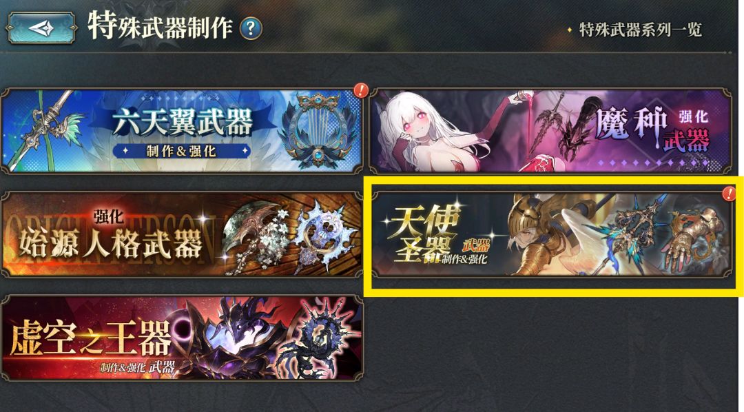 在学习[武器盘]、队伍配置思路及各种游戏机制后,我们再来了解几种特殊的武器和它们的获取渠道,首先我们要来到[武器制作]页面: