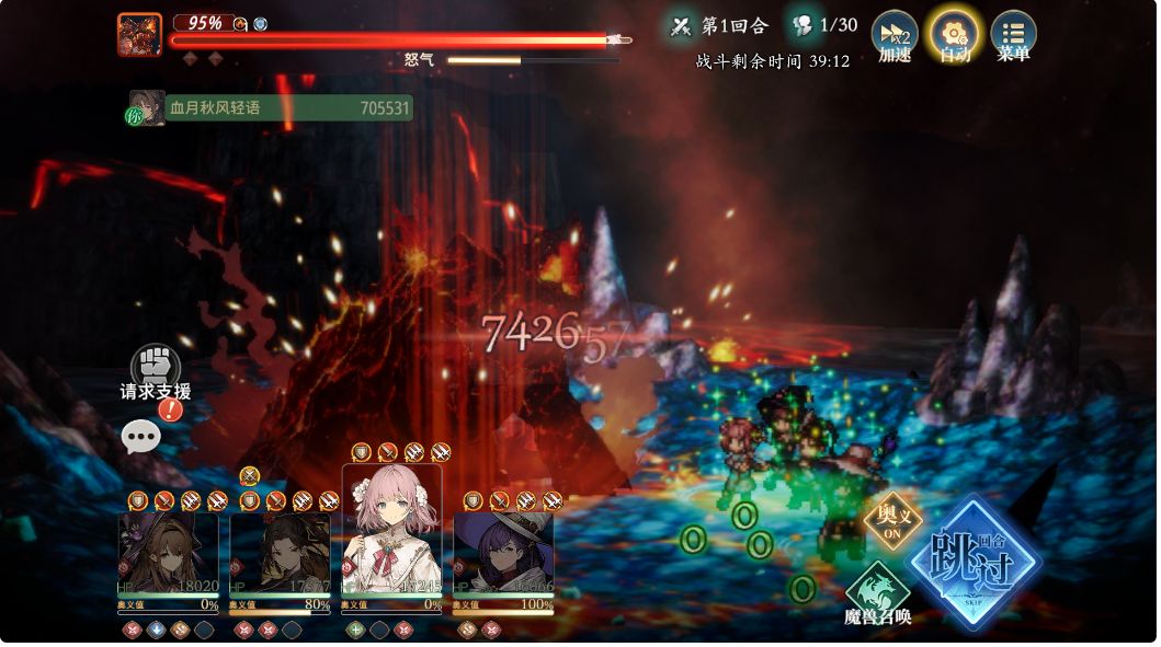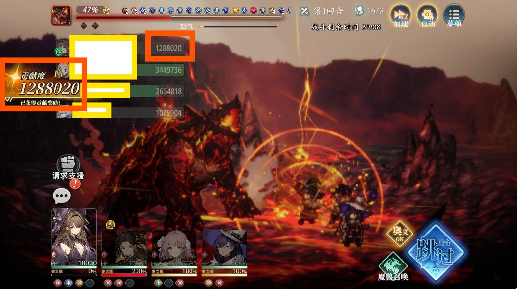 在实战时,其实只有你释放[奥义]的那一回合,你点击[回合跳过]后等待的时间会比较长,如果只是跳过普通攻击动画的话,点击[回合跳过]后,其实基本不用等就可以进行下一回合操作了——这也就导致,手动操作时,有时候全程不放[奥义],全靠技能和[普通攻击],可以花费更少的时间单挑Boss