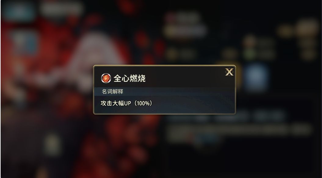 顺便说一下:上图中的[全力]97%在角色的血量最高时,基本就等同于97%的[攻击力]Buff,只不过和一般的[攻击力]Buff是不同乘区而已,计算最终[攻击力]时彼此作乘法——[背水]也是如此,不过[背水]只有在生命值较低时才会获得最大效益