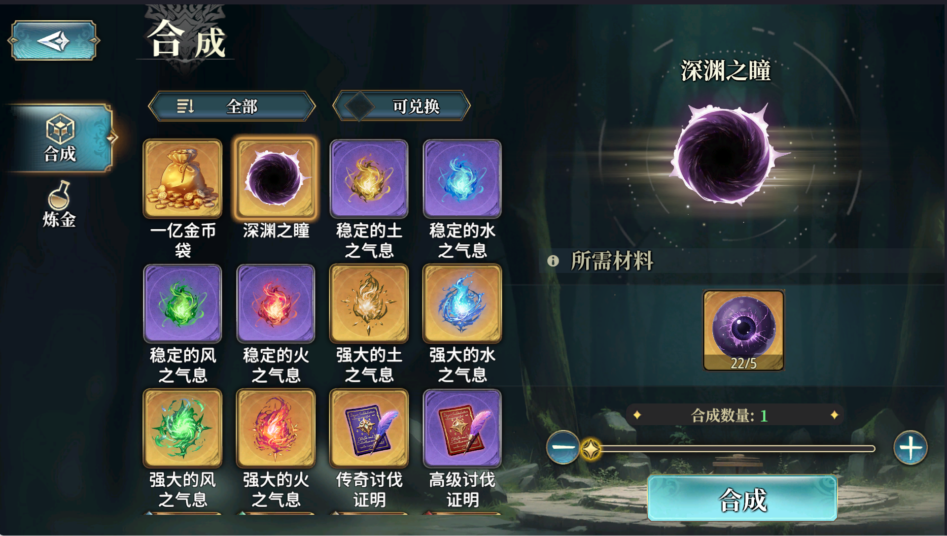 顺带提一下:[黑爷爷]副本也会刷出来这个材料[幻影之眼],可以在[合成]系统中用5个[幻影之眼]合成1个[深渊之瞳]
