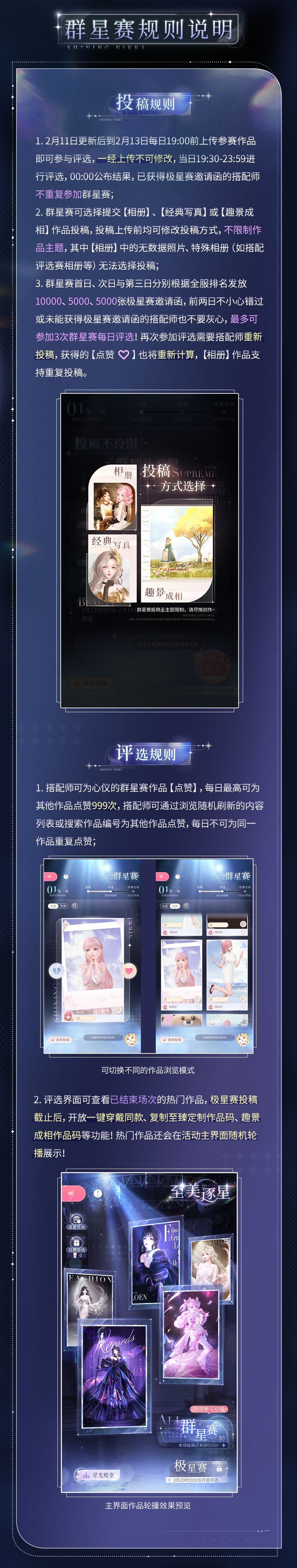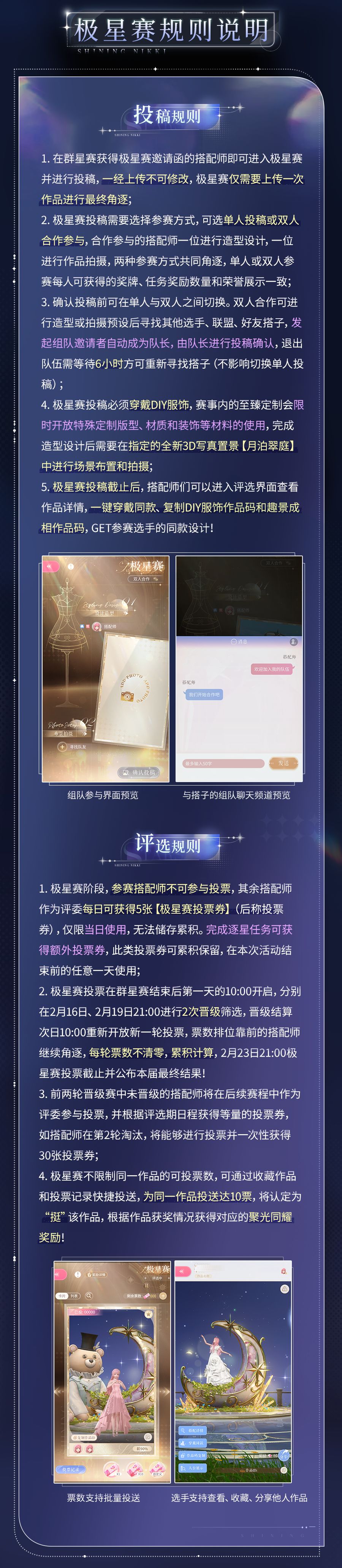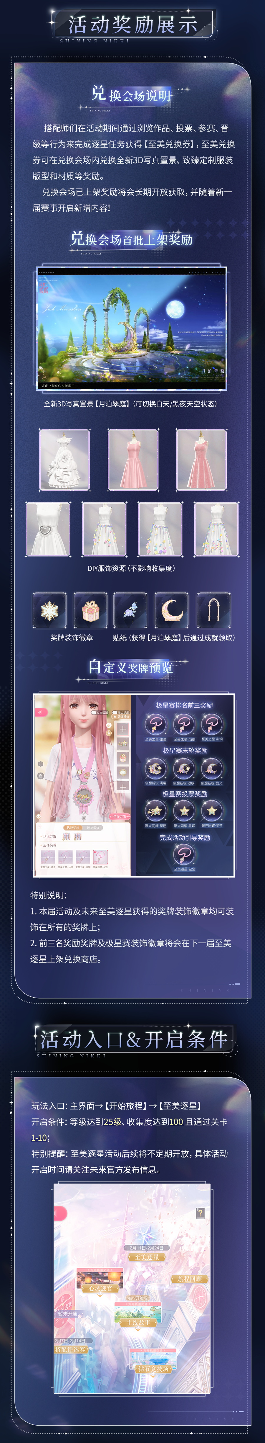 ⭐2月11日更新后,全新设计大赛【至美逐星】开启,参与活动免费获取全新3D写真置景(趣景成相拍照场景)、自定义奖牌、贴纸、致臻定制服装版型和材质等丰厚奖励!