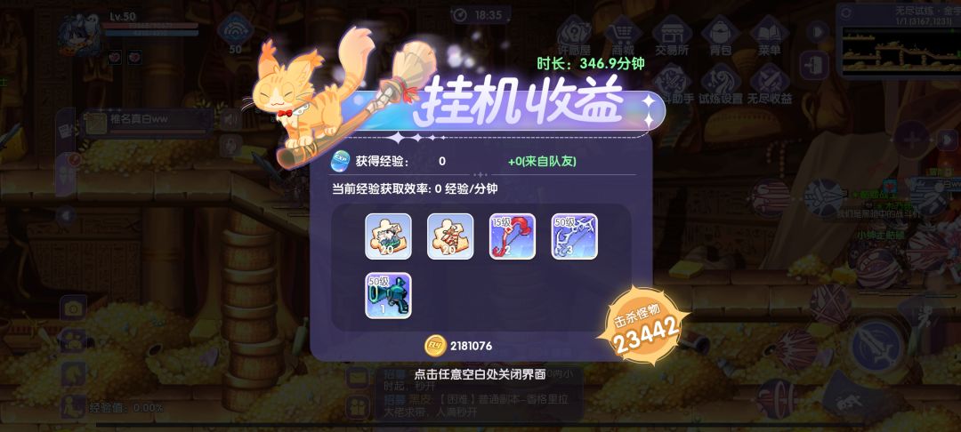 离线收益:支持挂机刷怪,即使下线也能获得经验和道具,极大地减轻了肝度。