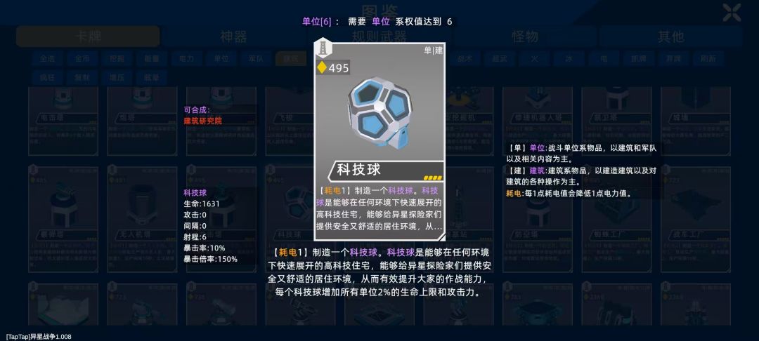 科技球是能够在任何环境下快速展开的高科技住宅,能够给异星探险家们提供安全又舒适的居住环境,从而有效提升大家的作战能力。
