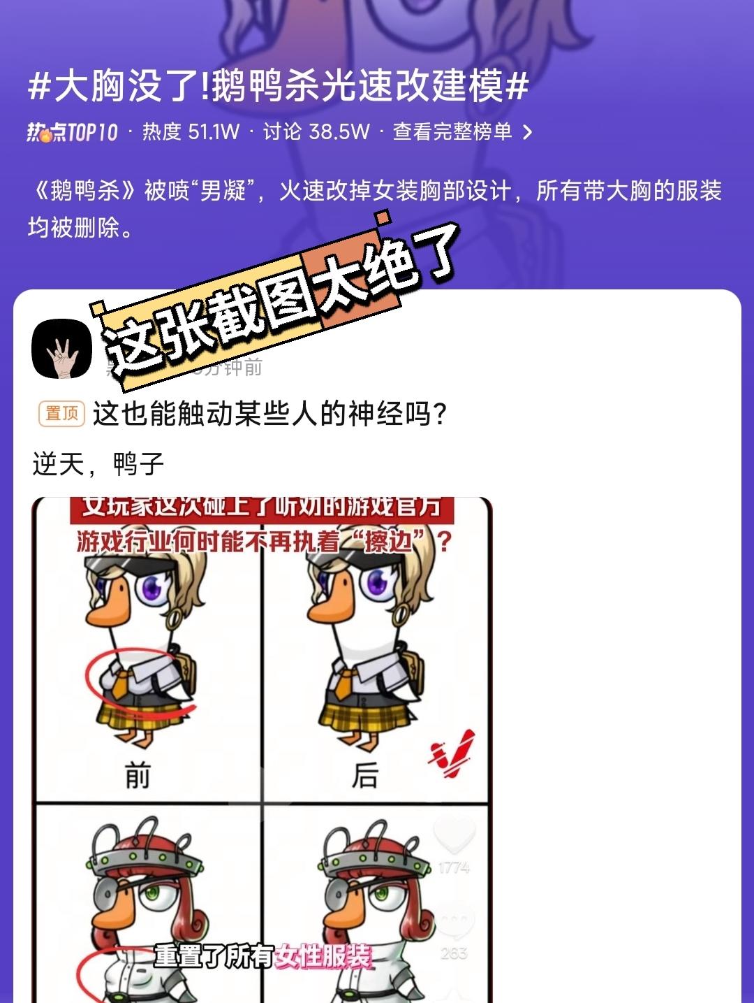 负责运营,风靡全球玩家的策略休闲游戏《鹅鸭杀》最近又遭遇了,原因竟然是游戏里一些女性角色的服装,被部分玩家批评存在男性凝视的问题?这都啥啊咋看什么都是凝视起手