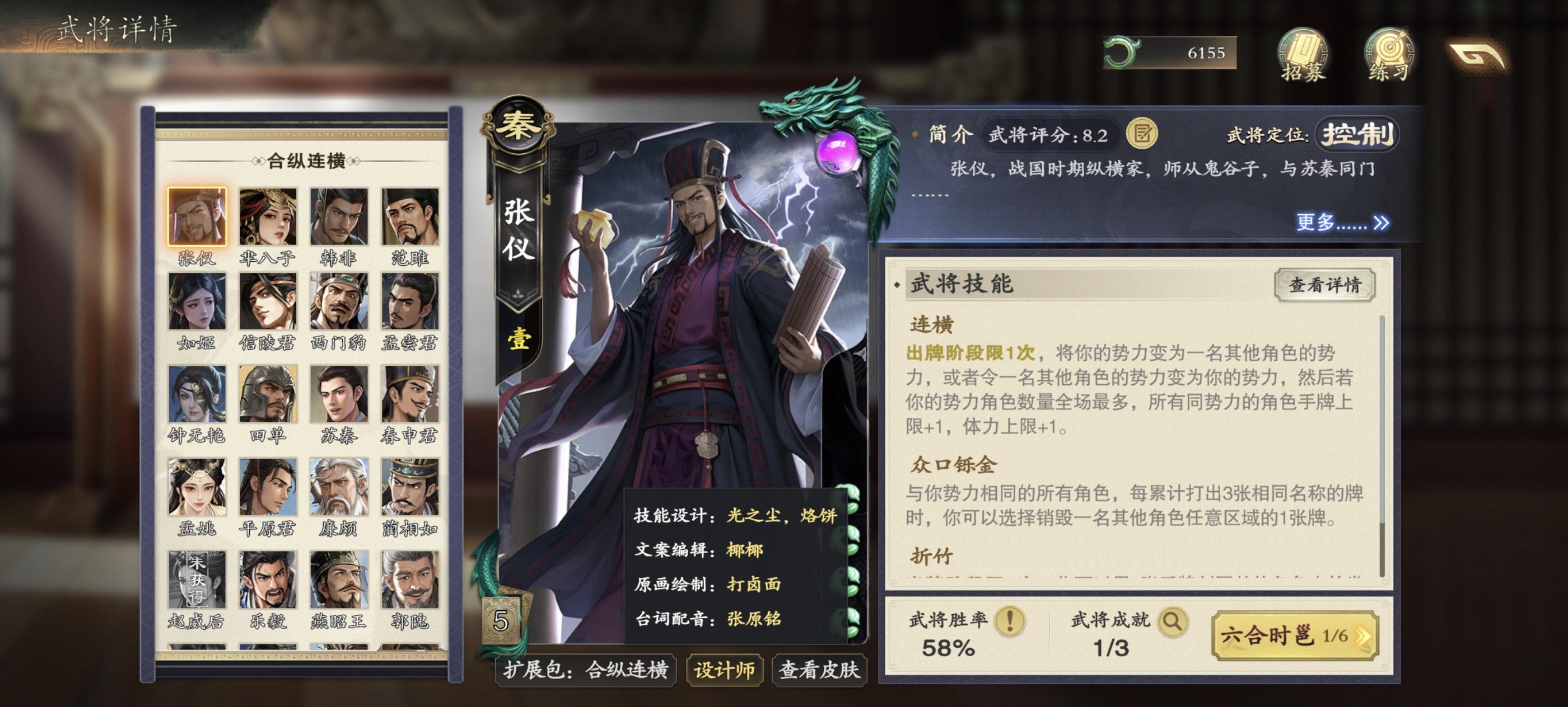 张仪跟芈八子平原君在设计上大抵是一个思路,都是感染别人,然后靠大势力拿收益,这种高度雷同的公式化设计,本质上暴露了设计师的无能,照我看这三个武将只留张仪就够了,其他两个可以拿回去重做了。张仪的优点在于把握住了正负双向收益的设计思路,你的确可以只连横自己人保证稳定收益,但这样做间接削弱了众口铄金的发动频率,而如果你主动成为世界的灯塔,把敌人拉进你的连横圈子,敌人在短时间内的确得到了你发放的福利,然而他每出一张牌都加速了众口铄金的发动,对于摸牌白敌人来说反而造成了手牌上限越高,手牌上限越低的奇观。因此,同为叠数值武将,我对张仪的评价是要高于范增的。三技能抄技能给了张仪更高的可玩性,通过座次和扔牌轻微限制强度,尽管事实上造就了很多超标配合,比如我就被扶苏张仪吃过分,但这个技能的设计感也比左慈霍去病(一个纯随机,一个直接抢)之流强不少。偷换技能的武将中如果只能留一个的话,我会毫不犹豫的选择张仪,左慈霍去病自不用说,韩非我虽然偏爱他,但不可否认韩非的局内体验很极端,也是一个自己和对面必有一方坐牢的武将,而张仪不仅有限制和支付的代价,技能也是自己可选的,更考验操作者的思路而非运气。同为慢节奏将,张仪比芈八子的设计好得不止一点半点。