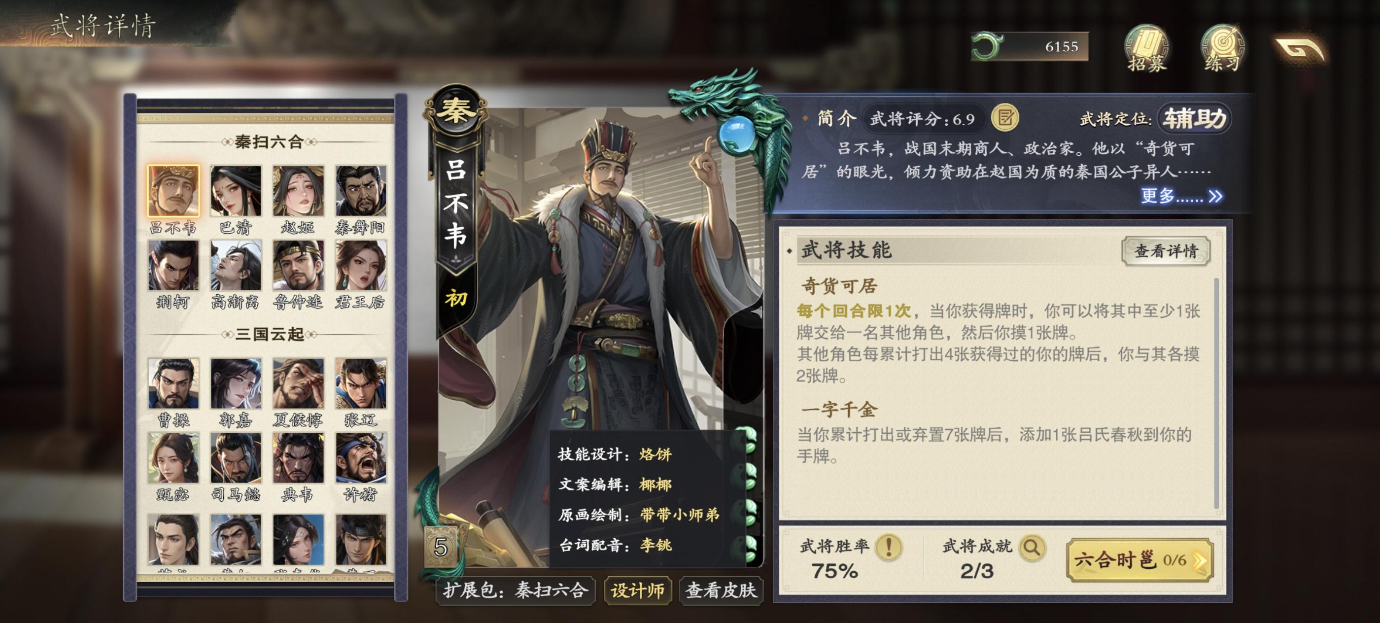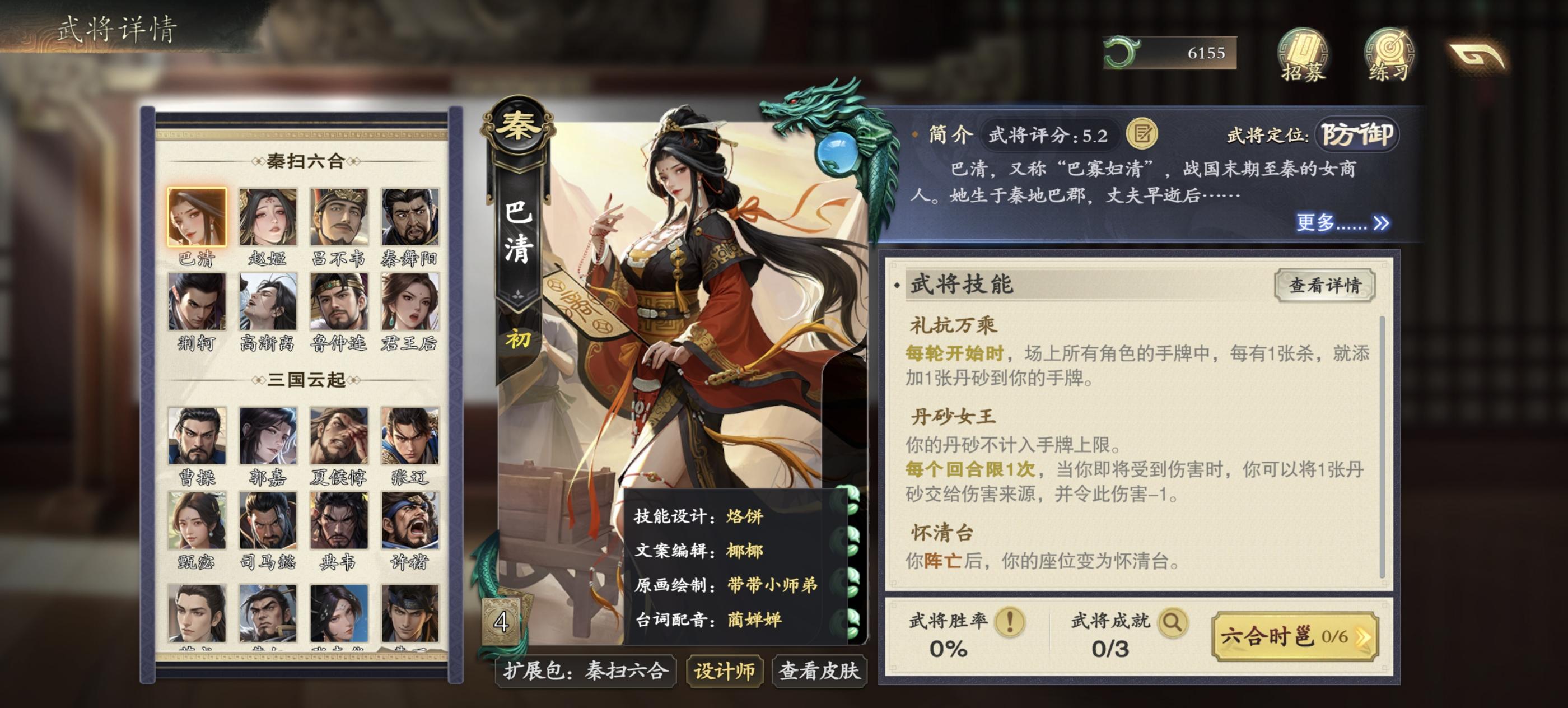 芈八子,让我没想到的是这么抽象的设计,主设计师居然是光之尘而非饼,但正如我上文所说,各种效果的堆砌从某种意义上来说也确实符合光之尘的设计风格,整个技能组从玩法上看公式且无趣,标榜历史契合的文案也是梦到哪句说哪句,以这个游戏目前的对局环境这个强度显然是不够看的,但如果以比较保守的三国杀遗老视角来看,那其实还行,能配一些高伤菜刀勉强玩玩。短板非常明显,开局白板需要队友刷才有技能,只要对手不蠢,那就只有第二轮才能启动,而且还要浪费队友一次造成伤害的机会给你开技能,而且新技能只能给一张牌,队友想蹭一个双结算的效果,还得用自己的牌。我对这个初始技能的评价就是完全不知所云,纯粹是设计出来给韩非左慈当DLC的。而且还有更幽默的,就是如果对方本来就没有牌,那么他也可以拒绝改秦势力并无事发生,就一个破伪防御技还变不了空城的人,对局体验要多难受有多难受。